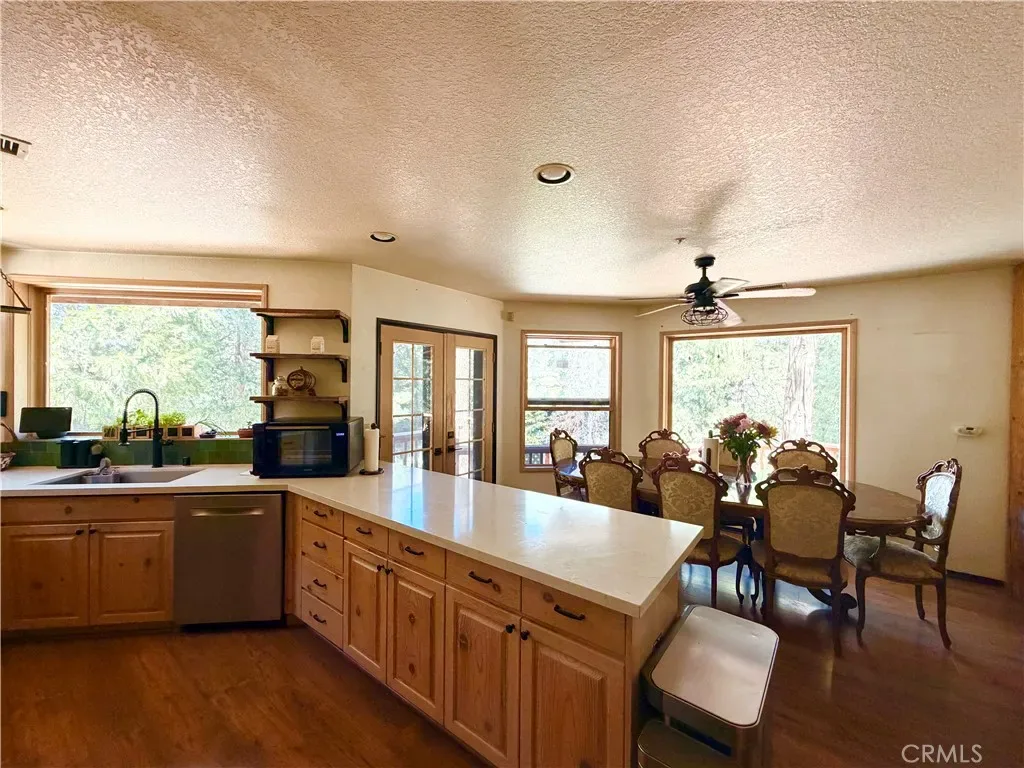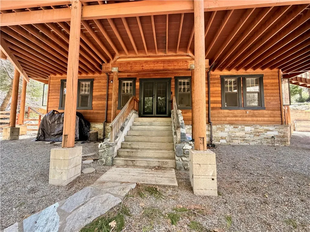 Custom Built Home has Spectacular views of the Palisades and San Bernardino Peak. Sitting way up high off the street in a quiet secluded location is this one of a kind large home on .61 acres. Big Family no problem! Plenty of room to roam and Tons of parking. Main level has large kitchen and dining area with direct access to the balcony and sunken living room. High end wood sash dual glazed windows throughout the home. Lodge pole pines and all the huge windows allow the outdoors to come in. It’s obvious you are in the middle of the forest here. Comfy living room has Vermont Castings efficient wood burning stove in addition to forced air heat. Main level primary suite open & airy and absolutely gorgeous also has direct access to wrap around deck. Downstairs features Second Vermont Casting stove to keep you comfy when the snow is falling outside, also has french doors for direct access to lower deck. Second master suite on this level as well! Third bedroom and bath on this, plus bonus room curently being used for storage has the potential to be a fourth bedroom. oversized laundry has a sink and craft/desk/folding area for your convenience. New forced air furnace, 2 York air conditioning units and water filtration system. Have you been waiting for the home that steals your heart and just aching to leave the chaos of the city? Now is your chance!