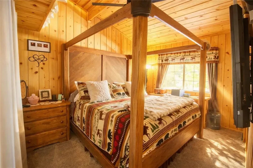 Charming single-story mountain home for sale in Forest Falls, offering the perfect blend of rustic character and everyday convenience. This 3-bedroom, 2-bath cabin-style home features a spacious, light-filled floor plan and a stunning mansard-style living room with rich knotty pine accents, delivering the warm mountain ambiance today’s buyers are searching for.