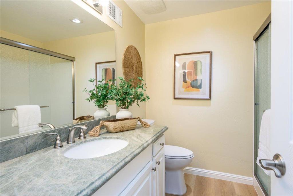 This Pristine, Bright & Updated 2 Story Bay Vista TH features 1,670 sq ft of comfortable living space & offering 3 BRs & 2 1/2 BAs. A welcoming Entry & large Living Rm continue to expand w/ the perfect space for a Den, Music Rm or Dining Rm (your choice), and leads to a Kitchen/Family Rm at the back, sparkling w/ modern appliances, including an electric cooktop range, dishwasher, microwave & refrigerator, all complemented by elegant granite countertops. The combination Kitchen/Family Room allows versatility of use as a Dining Rm, Play Rm or Office plus easy access to the rear yard. Next to the Kitchen is the convenience of a sep Laun Rm w/ more cabinets & full size W/D. The primary suite is a large retreat with a Walk-in closet and serene BA. Just add a comfortable chair or 2 for quick get-aways! The addl 2 BRs are roomy, light filled & offer closet organizers. Immac BAs w/ stone counters will catch the eye. Amenities include Hdwd Flrs. Newer Carpet, Shutters and Blinds, plus a Private enclosed Patio giving the enjoyment of nature & the outdoors & leading to a 2 Car Garage. Owned and loved for 50 yrs with Pride of Ownership and located w/in the SM-FC Elem School Dist, this home is perfect if you are seeking great maintenance, educ & rec opportunities. It’s a DON’T MISS!