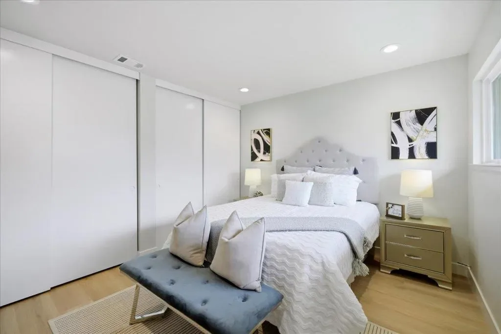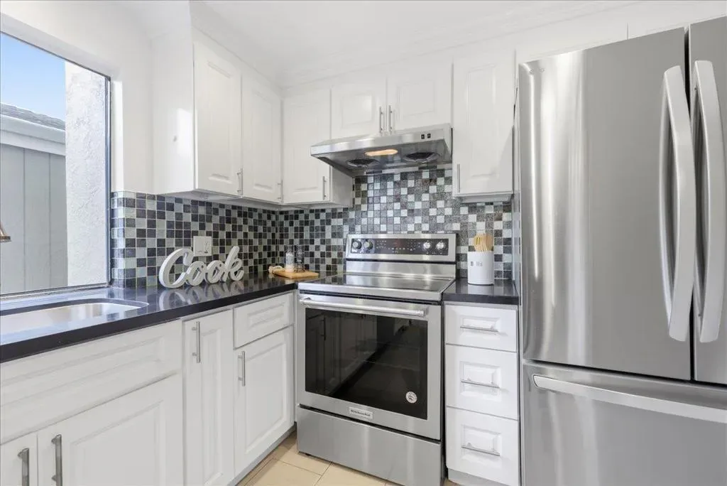 Move-in ready 3-bedroom, 2.5-bath townhouse in the desirable Isle Cove community, offering 1,330 sq ft of bright, open living space. Recently remodeled with new flooring, fresh interior paint, recessed lighting, quartz countertops, custom cabinetry, stainless steel appliances, and double-pane Milgard windows. All bedrooms are upstairs, including a spacious primary suite with double vanity. Guest bedrooms enjoy peaceful water views. The townhouse includes a detached side-by-side two-car garage. HOA covers water, sewer, garbage, exterior structure, roof, and fire insurance, and offers amenities such as a pool, clubhouse, tennis courts, and playground. No flood insurance required. Prime location near lagoon trails, walk to Foster City Elementary School and Edgewater Plaza, with easy access to Highways 101 & 92 and nearby shopping including Costco, Ranch 99, and Target.