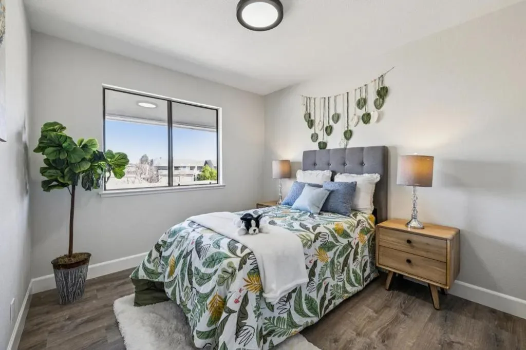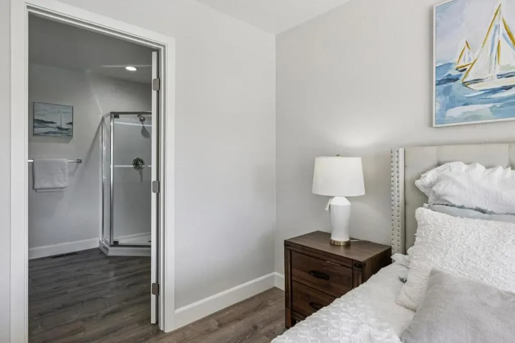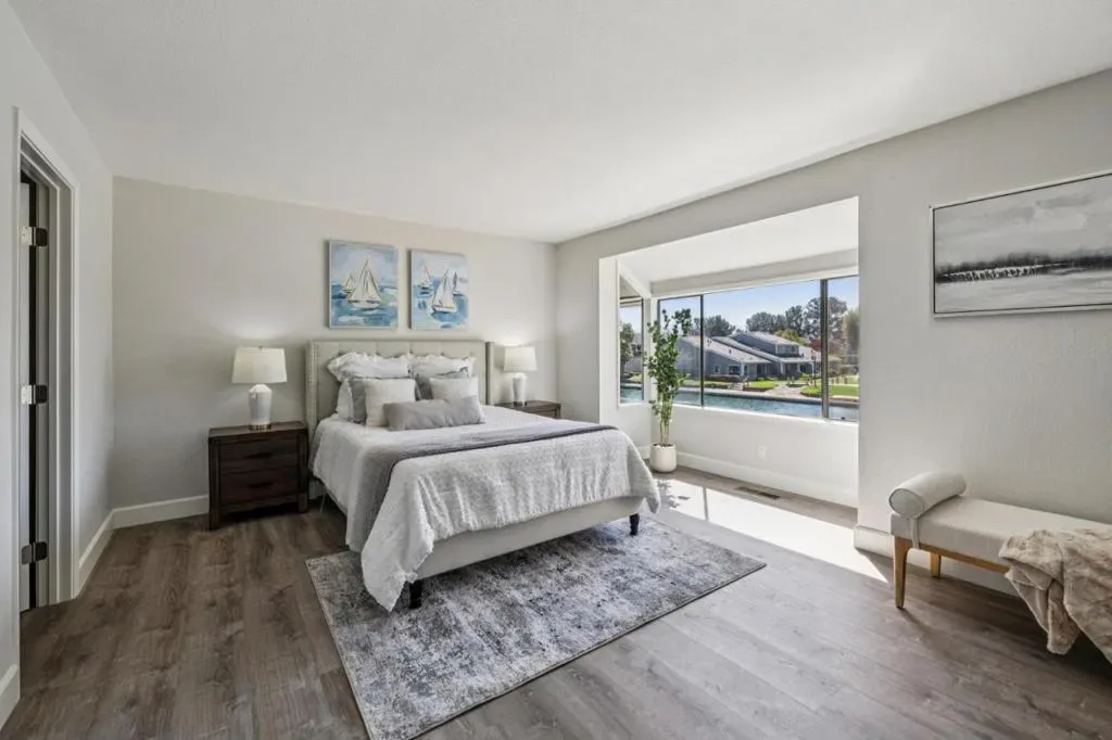 Stunning waterfront townhome on an exclusive island! Incredible lagoon view. Extremely sunny and bright with skylight. Spacious floor plan of 1546 sqft, 3 bedrooms and 2.5 bathrooms. Beautifully remodeled with modern finishes. Large primary suite with personal retreat with spectacular water and mountain view. Amazing modern kitchen with quartz countertops and backsplash, white cabinets with soft close, stainless steel kitchen appliances. Luxurious primary bathroom with quartz countertop, double sinks, LED mirror. Stylish light fixtures, closet doors and organizers. Elegant laminate floor, recessed LED lights, remodeled fireplace. In-unit laundry and side-by-side two car garage. Sunbathed low maintenance backyard overlooks spectacular lagoon and west mountains. HOA has pool, clubhouse, tennis courts, and covers building structure, water, sewer, garbage, and unit fire insurance. Close to walking trail by lagoon and across street from award winning FC Elementary School & Edgewater Plaza. Easy access to HWYs 101 & 92.