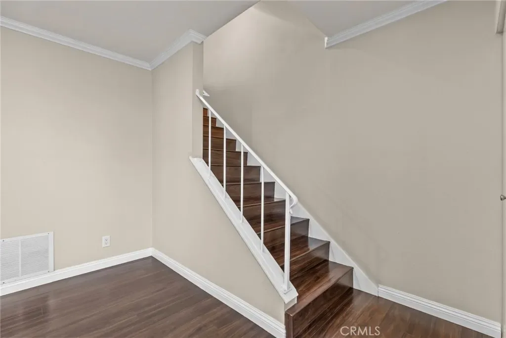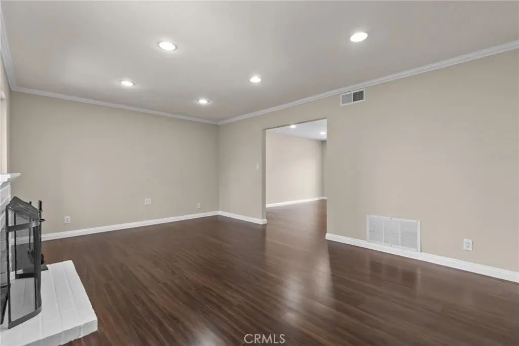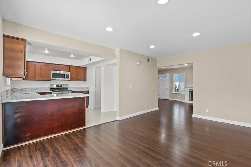 A Rare Find and Highly Sought-After End Unit 2-story 4 bedroom 1.5 bath townhome in a quiet community of Harbor Valley. Central A/C and heating, recessed lighting, new interior paint, wood laminate flooring throughout, tile flooring in kitchen and bathrooms. 2 car garage with direct access to the patio and a roll-up garage door. Plus an extra parking with permit on first come first serve basis. Solid entry door opens to a spacious living room, crown molding, full of natural light with crackling white brick fireplace, which connects seamlessly to the dining room with sliding door that opens to a private patio. The kitchen has been beautifully designed with wood cabinetry, granite counter tops, stainless steel appliances with brand new dishwasher, brand new total convection air fry self-cleaning electric range, and a microwave. A huge inside laundry room with washer and dryer hookups and storage space is conveniently located next to the kitchen and an adjacent half bathroom. All 4 bedrooms upstairs, most have mirrored closets. Spacious linen storage. The primary bathroom offers separate tub and shower combo. Just steps to community amenities: sparkling pool, pickleball/tennis court, basketball, playground and a clubhouse for social events. HOA covers roof care, exterior painting and landscaping. Short drive to Mile Square Park, Beach, Recreation, Shopping, Restaurants, Freeway Access. WELCOME HOME!