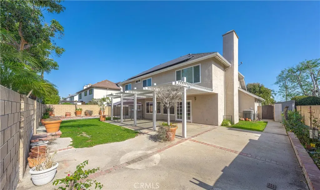 **Stunning Executive Home in Pheasant Run! ** Welcome to this exquisite 4-bedroom, 2.5-bathroom residence that boasts an expansive 2,752 square feet of luxurious living space. Upon entering, you’ll be greeted by a large family room adorned with a stunning brick fireplace, creating a warm and inviting atmosphere, perfect for entertaining friends or enjoying quality family time. The thoughtfully designed living and dining rooms offer additional elegance and space, making them ideal for hosting gatherings and creating lasting memories. The gourmet kitchen is a chef’s dream, featuring an inviting eat-in area, rich cabinetry that exudes warmth, and generous counter and cabinet space. A stylish custom backsplash, a convenient serve-over bar, and built-in desk space provide both functionality and flair. Retreat to the primary bedroom, where soaring ceilings enhance the sense of spaciousness. The ensuite bathroom is a true sanctuary, complete with a dual sink vanity, a luxurious soaker tub perfect for unwinding, and an expansive walk-in closet to accommodate all your wardrobe needs. The additional three bedrooms, coupled with a well-appointed dual sink bathroom, ensure ample space for family members or guests to enjoy comfort and privacy. Step outside to discover a delightful backyard oasis, equipped with a covered patio, offering a perfect setting for lively gatherings or serene moments of relaxation. With the eco-friendly addition of 20 solar panels worth $30k, currently leased. This remarkable home is ideally situated near pristine beaches, an array of shopping and dining options, and top-rated Fountain Valley schools, making it the perfect sanctuary for a vibrant lifestyle.