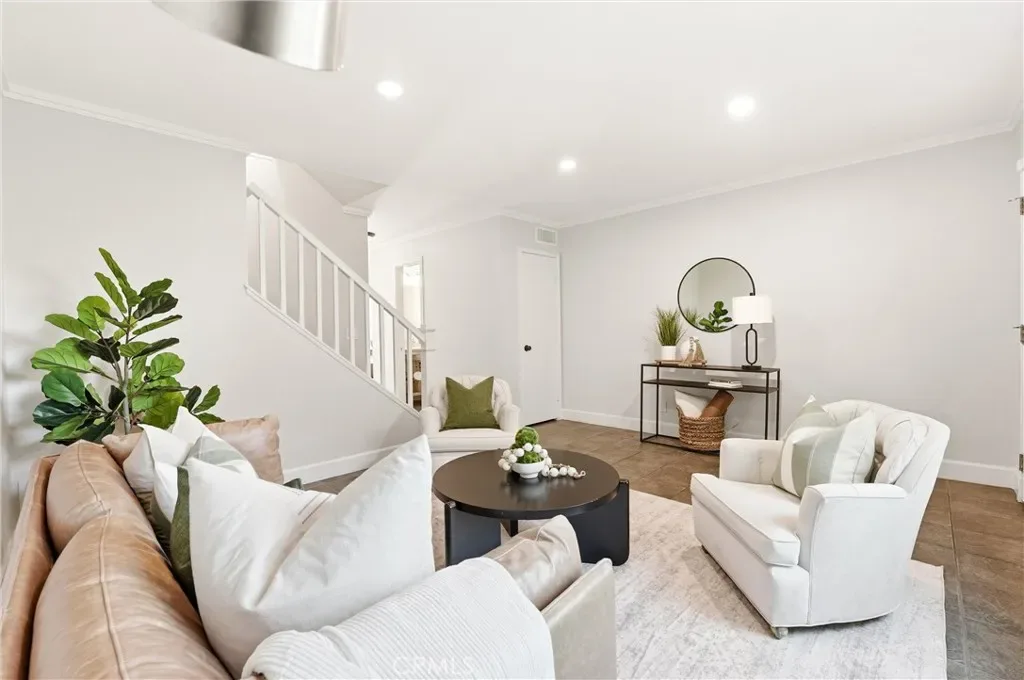 Updated Fountain Valley townhome featuring a rare 2-car garage with direct access via patio and in-unit laundry. Located in a well-maintained community with pool and spa, this home offers a functional layout and extensive system and interior improvements. Main level includes a bright living area with large windows and new Milgard windows and sliding glass door providing natural light and access to the private patio. Tile flooring, recessed lighting, and updated switches and outlets throughout. Kitchen upgraded with white shaker cabinetry, stainless steel appliances, new kitchen faucet with cup sprayer, and dedicated stainless steel refrigerator water line. Private patio provides direct access to the attached 2-car garage, which includes a newly installed quiet garage door opener. In-unit laundry adds additional convenience. Significant system upgrades include new insulated ductwork, added ceiling vents in upstairs rooms, new register covers, and new asbestos-free furnace flue pipe. Prior asbestos abatement (ductwork wrap and furnace flue pipe) has been completed with removal of affected materials. Additional improvements include QuietCool whole house fan, QuietCool variable speed roof exhaust fan, solar-powered garage exhaust fan, and Honeywell WiFi thermostat. Additional features include Ring doorbell, new doorbell transformer and chime, updated lighting in upstairs bathroom and secondary bedroom, and new door for water heater enclosure. Upstairs bedrooms feature updated flooring and improved airflow from upgraded ducting. Community amenities include pool, spa, and landscaped greenbelts. Conveniently located near shopping, dining, parks, and major commuter routes with access to Huntington Beach and surrounding areas.