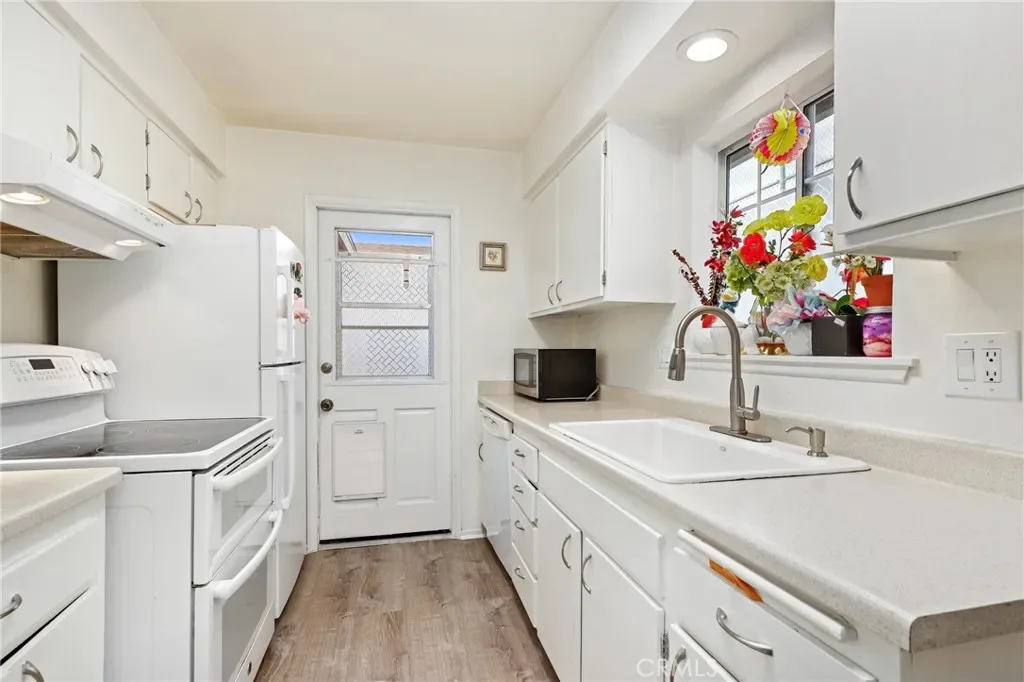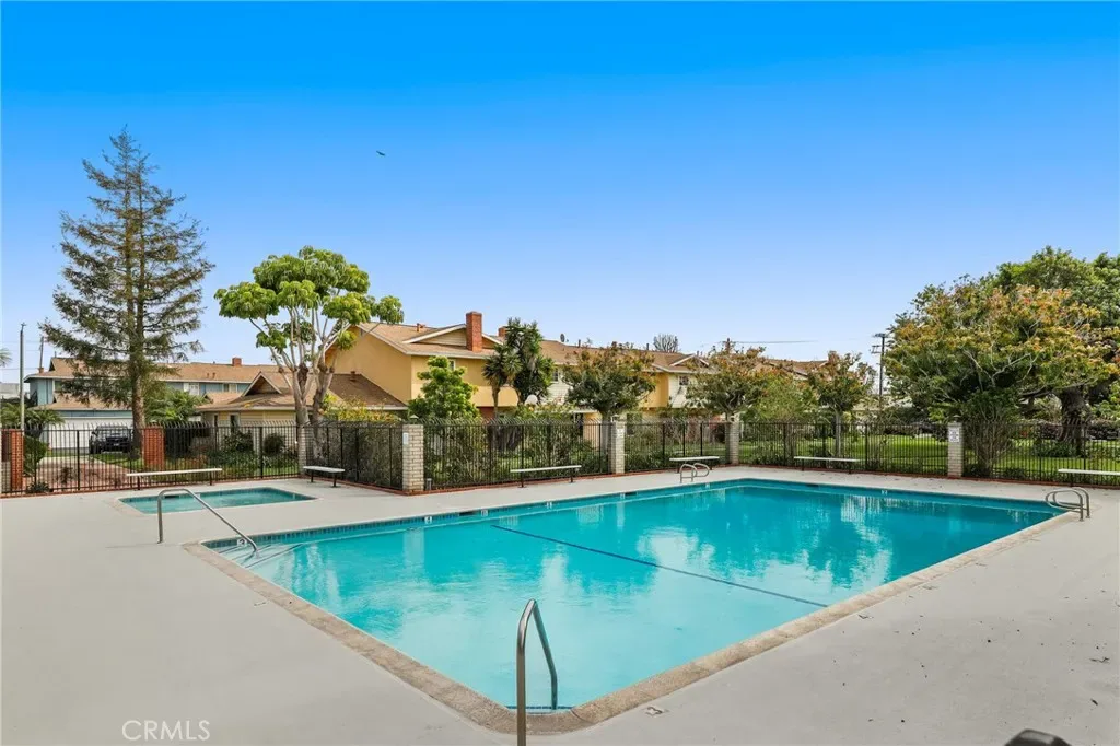 Welcome to this beautifully maintained single story townhouse located in the desirable Harbor Valley community of Fountain Valley. This rare end unit offers privacy, natural light, and a peaceful setting with views of the community’s open green space, pool area, and sport courts. The home features a comfortable and efficient floorplan with one bedroom and one bathroom, designed with an open layout that connects the kitchen and living area for an inviting living space. The galley style kitchen includes laminate countertops and ample cabinet storage while remaining open to the main living area, making it ideal for everyday living and entertaining. Recent improvements include new hard surface flooring throughout the interior, creating a clean and modern feel from the moment you enter. The bathroom has been thoughtfully updated and features a stunning walk in shower with stylish finishes. The home is also equipped with a newer split system HVAC providing both heating and cooling for year round comfort, along with a newer upgraded electrical panel. The private patio offers a versatile outdoor space and includes a large storage shed that can serve as additional storage, a hobby room, craft space, or small workshop. From the patio you have direct access to the two-car garage, which includes laundry hookups and plenty of room for parking and storage. This desirable end unit location provides beautiful views of the expansive community open space and recreation areas. Harbor Valley is a well established and well maintained community with mature landscaping, plenty of guest parking, and low HOA dues. Conveniently located near shopping, restaurants, and everyday amenities, this home is also just a short drive to Mile Square Park and approximately 20 minutes from the beach. With central Orange County access and close proximity to major freeways, this location offers both comfort and convenience. A wonderful opportunity to own a thoughtfully updated home in one of Fountain Valley’s most established communities.