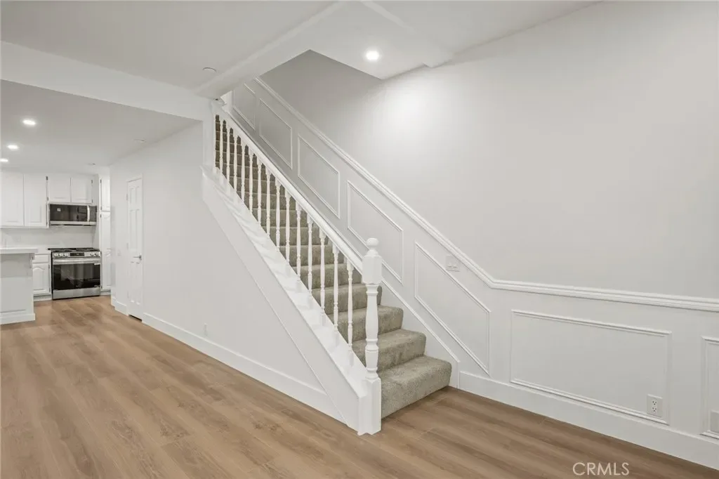Unit #31A: Features an open, versatile living area with laminate flooring—perfect for entertaining,updated kitchen with all new appliances and fixtures. On the second level, you’ll find two bedrooms, including a primary bedroom with en suite bathroom and its own balcony overlooking the courtyard, spa & picturesque fountain. A generously sized in-unit laundry room is conveniently located on this level too and provides abundant storage and space for a full-size washer and dryer