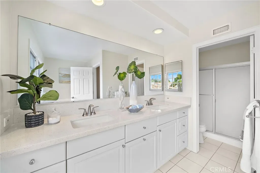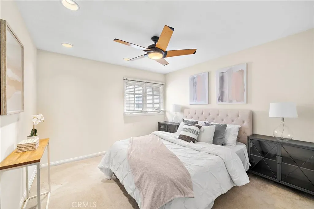 This spacious and thoughtfully designed residence offers 5 generous bedrooms and 3 full bathrooms, including a convenient main-floor bedroom and full bath—perfect for guests, extended family, or a private home office. Step inside to soaring vaulted ceilings in the elegant living room, highlighted by a charming bay window and a warm, inviting fireplace that fills the space with abundant natural light. The large open-concept kitchen is both stylish and functional, featuring granite countertops, an oversize built-in in kitchen-aid refrigerator, newer appliances, ample cabinetry, and a spacious eat-at breakfast bar. The kitchen flows seamlessly into the comfortable family room, creating an ideal space for everyday living and effortless entertaining. The family room showcases custom built-in shelving and a second cozy fireplace, adding both character and functionality. Upstairs, the expansive and serene primary suite serves as a luxurious private retreat with a dual-sink vanity, quartz countertops, an ensuite bathroom, and separate his-and-her walk-in closets offering abundant storage. The upstairs guest bathroom is equally impressive, featuring dual sinks, a walk-in shower, and a separate soaking tub—perfect for relaxation. Additional highlights include upgraded quartz countertops in all three bathrooms, central air conditioning and heating for year-round comfort, a durable tile roof, and a spacious three-car garage with plenty of storage. The professionally manicured backyard creates a peaceful outdoor setting, complete with an above-ground spa—perfect for relaxing evenings or entertaining guests. Located in a highly desirable community close to parks, excellent schools, shopping, dining, and everyday conveniences, this exceptional home offers the perfect blend of comfort, space, style, and an unbeatable location.