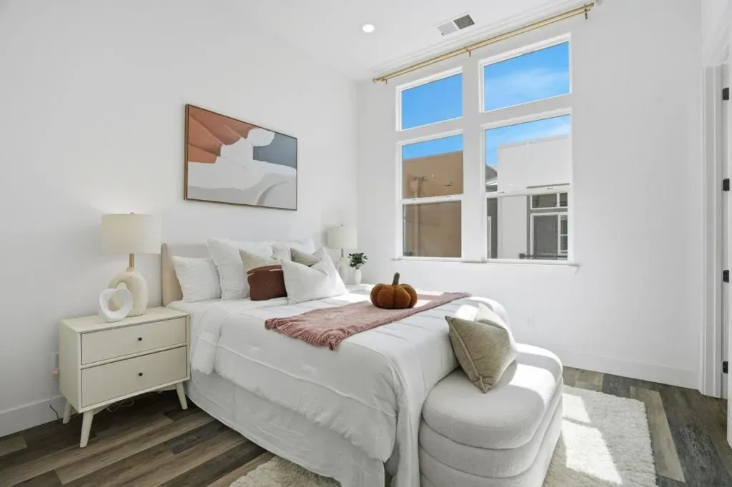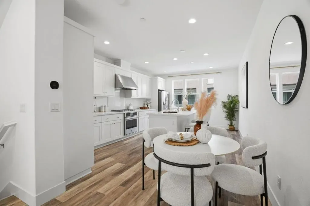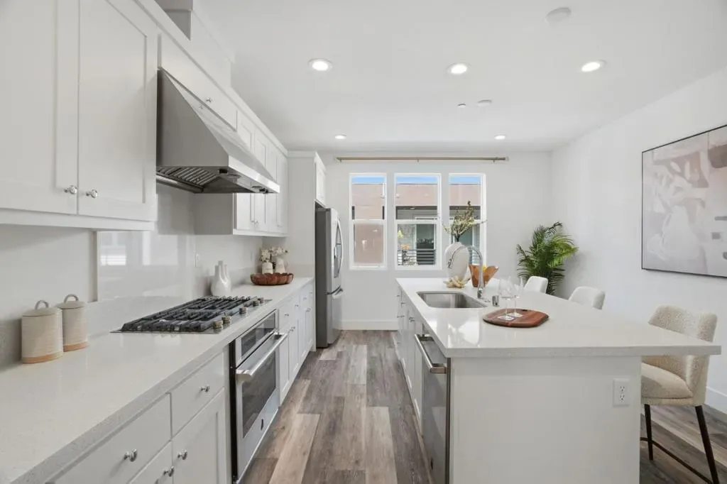 Discover this stunning 4-year-new townhome-style condo in the sought-after Metro West community in Fremonts Innovation District. Thoughtfully designed for modern living, this home features a bright, open floor plan with high ceilings, abundant natural light, and a low HOA in the $300s. Stylish interior includes luxury vinyl plank flooring, quality cabinetry, and premium finishes throughout. The upgraded kitchen offers quartz countertops, premium stainless steel appliances, ample cabinetry, and a spacious island ideal for cooking and entertaining. The primary suite features high ceilings, large windows, a modern en-suite bath with dual vanities, and a walk-in closet. The second bedroom includes its own full bath, perfect for guests or a home office. 2-car tandem garage with flex space provides room for parking plus an office, gym, or extra storage. Enjoy access to a BRAND NEW community clubhouse and fitness center. Smart and energy-efficient with solar, smart thermostat, and modern connectivity. Prime location near Tesla and major tech shuttle stops, with easy access to BART, Hwy 880/680, shopping, dining, parks, and schools. Dont miss this contemporary, low-maintenance home in a vibrant, growing neighborhood!