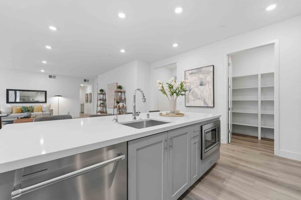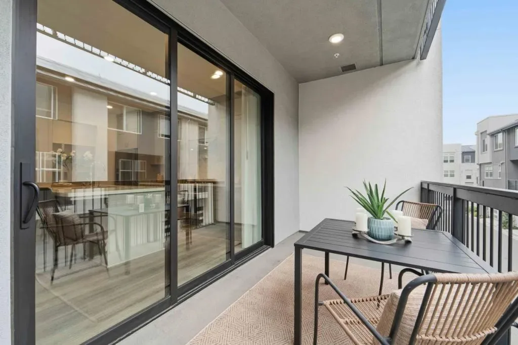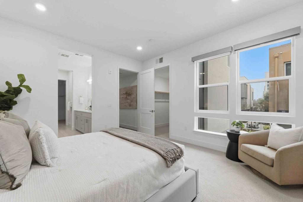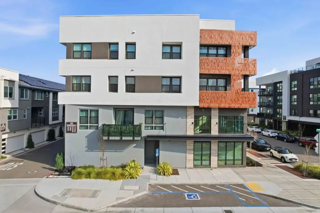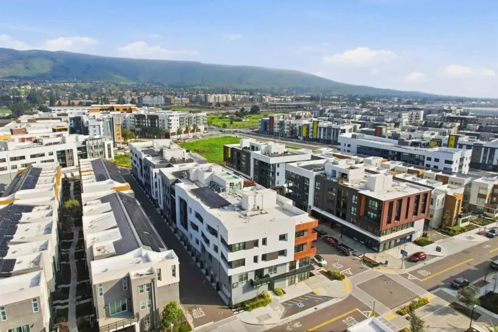 Welcome to this modern, luxury 2-year-new condo in Fremont’s desirable Metro West community. This spacious 1,866 sq ft home offers 3 bedrooms and 2 bathrooms with a bright open-concept layout. The gourmet kitchen features a gas cooktop, quartz countertops, large center island with breakfast bar & sink, plenty of cabinets, KitchenAid appliances, walk-in pantry, and water purifier. The covered balcony connects seamlessly to the kitchen and living area perfect for relaxing or entertaining. Custom luxury window shades and curtains throughout. The expansive primary suite includes dual walk-in closets and bathroom with double sinks and deluxe shower with seat. Two additional bedrooms and a full bath are conveniently located in the hall. Enjoy central heating and A/C, an indoor laundry room with washer & dryer, and a detached tandem 2-car garage with EV-ready outlet. Community amenities include a rooftop deck with BBQ, fire pit, and seating area, plus a clubhouse, fitness room, shared office, entertainment kitchen, dog wash station, and playground. Ideally located within walking distance to BART, top-rated Lila Bringhurst Elementary school, community parks, and Tesla Factory, with easy access to Hwy 680/880. Move-in ready gem is designed for modern lifestyles and unbeatable convenience!