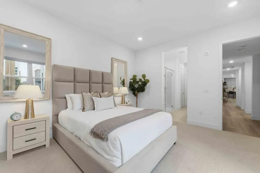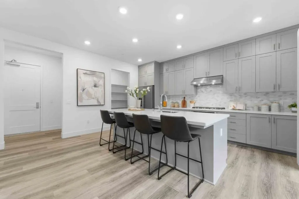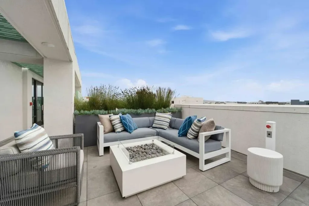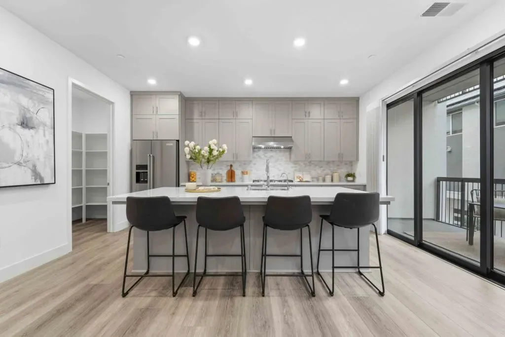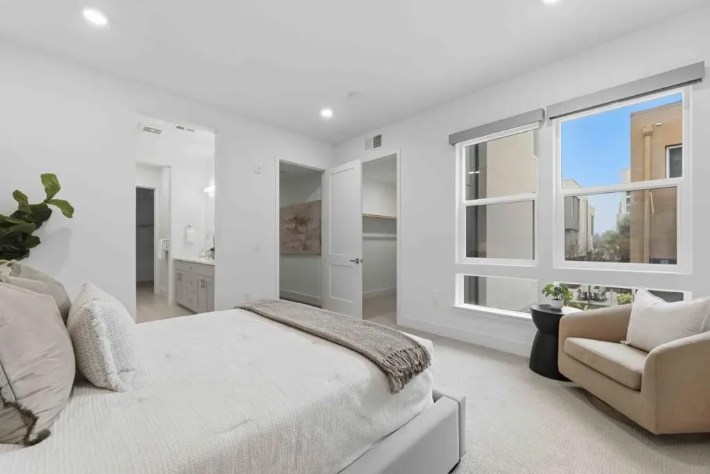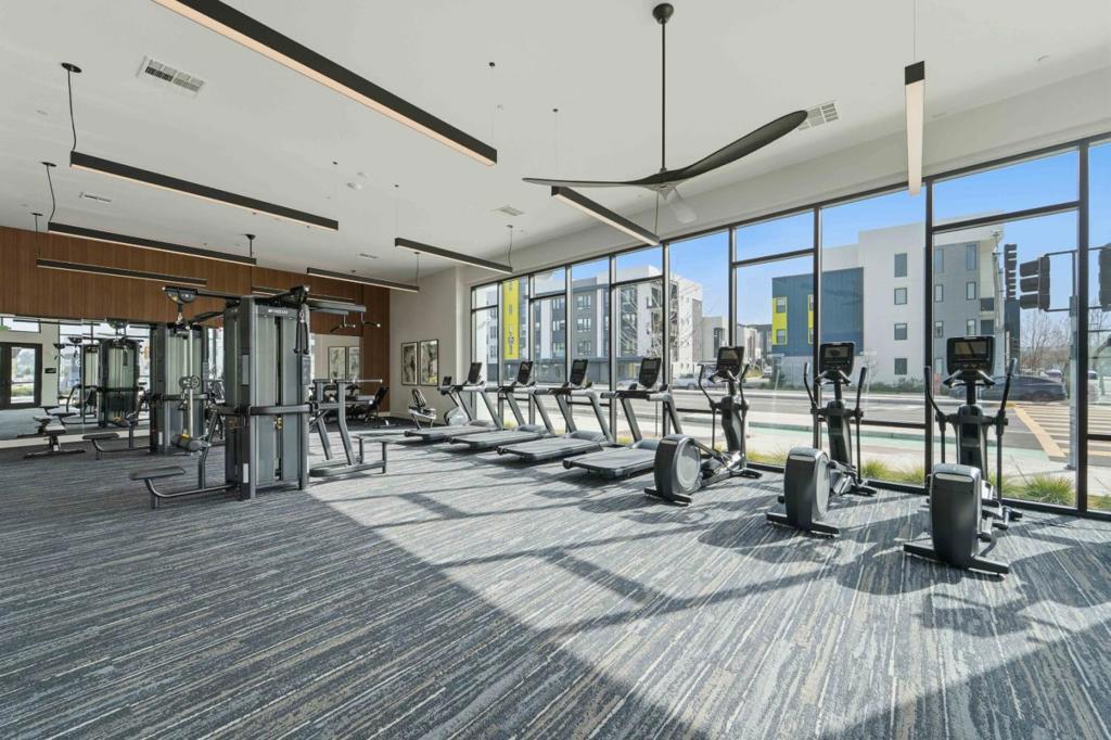 Welcome to this modern, luxury 2-year-new condo in Fremont’s desirable Metro West community. This spacious 1,866 sq ft home offers 3 bedrooms and 2 bathrooms with a bright open-concept layout. The gourmet kitchen features a gas cooktop, quartz countertops, large center island with breakfast bar & sink, plenty of cabinets, KitchenAid appliances, walk-in pantry, and water purifier. The covered balcony connects seamlessly to the kitchen and living area perfect for relaxing or entertaining. Custom luxury window shades and curtains throughout. The expansive primary suite includes dual walk-in closets and bathroom with double sinks and deluxe shower with seat. Two additional bedrooms and a full bath are conveniently located in the hall. Enjoy central heating and A/C, an indoor laundry room with washer & dryer, and a detached tandem 2-car garage with EV-ready outlet. Community amenities include a rooftop deck with BBQ, fire pit, and seating area, plus a clubhouse, fitness room, shared office, entertainment kitchen, dog wash station, and playground. Ideally located within walking distance to BART, top-rated Lila Bringhurst Elementary school, community parks, and Tesla Factory, with easy access to Hwy 680/880. Move-in ready gem is designed for modern lifestyles and unbeatable convenience!