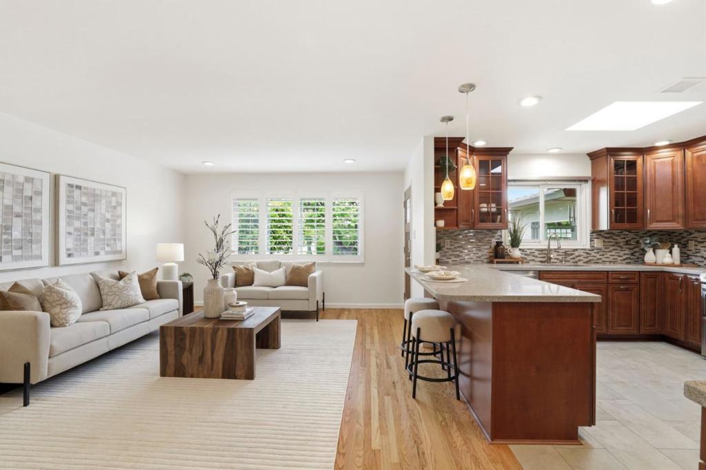 Beautifully updated single-story home in desirable Glenmoor neighborhood. Situated in a private court on a premium cul-de-sac lot, this light-filled residence features an open kitchen & living room layout, hardwood oak flooring through most of the home, detailed window casings, and updated lighting throughout. Spacious kitchen offers skylight, breakfast bar seating, abundant cabinetry with pull-out shelves, large pantry cabinet, double oven gas range, microwave, and ample counter space. Bright living and bonus rooms with custom shutters and blinds overlook lush gardens. A ~295 sq. ft. bonus room not included in official sqft. Private primary suite is located at rear of home featuring ensuite bath, large mirrored closet, and backyard views. Updated baths feature quality finishes including Carrara marble, bamboo vanity, solar tubes, frameless glass, and Hansgrohe fixtures. Additional upgrades include copper plumbing, tankless water heater, newer sewer lateral, recessed lighting, finished 2-car garage with epoxy floors and built-in storage, & automatic exterior lighting. Backyard offers privacy hedges, fruit trees, raised planters, gravel patio area, and multi-zone irrigation system. Conveniently located near top-rated schools, shopping, parks, & major commute routes. Welcome Home!!