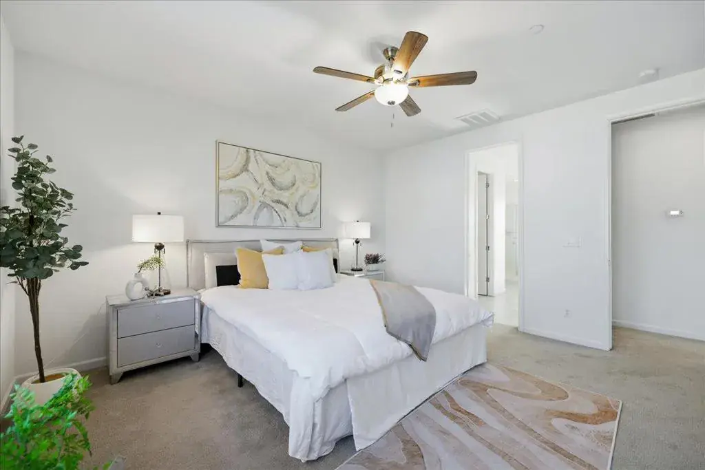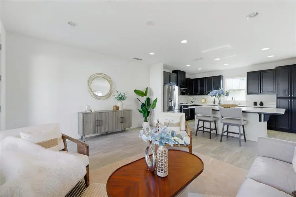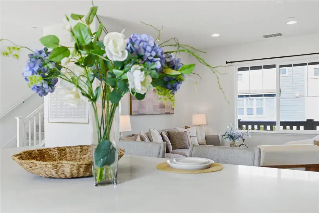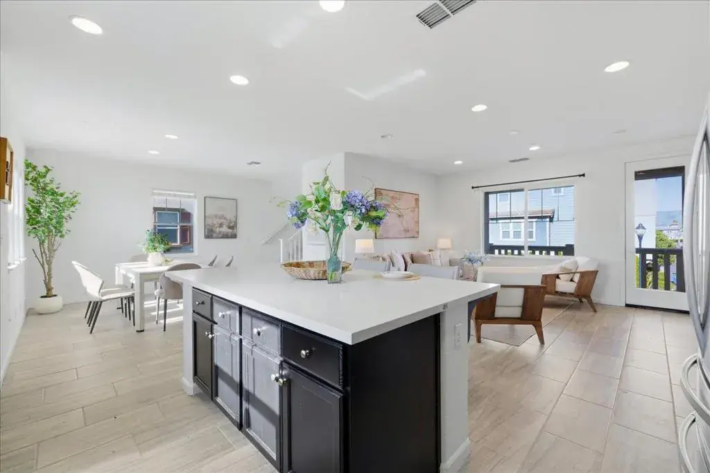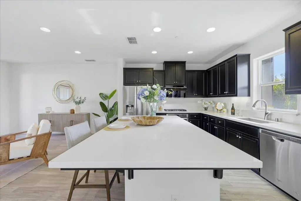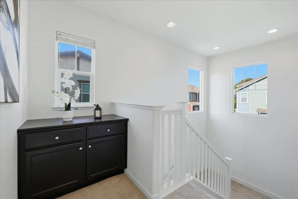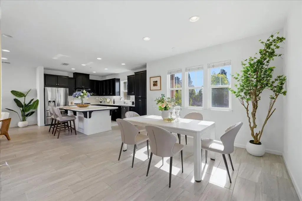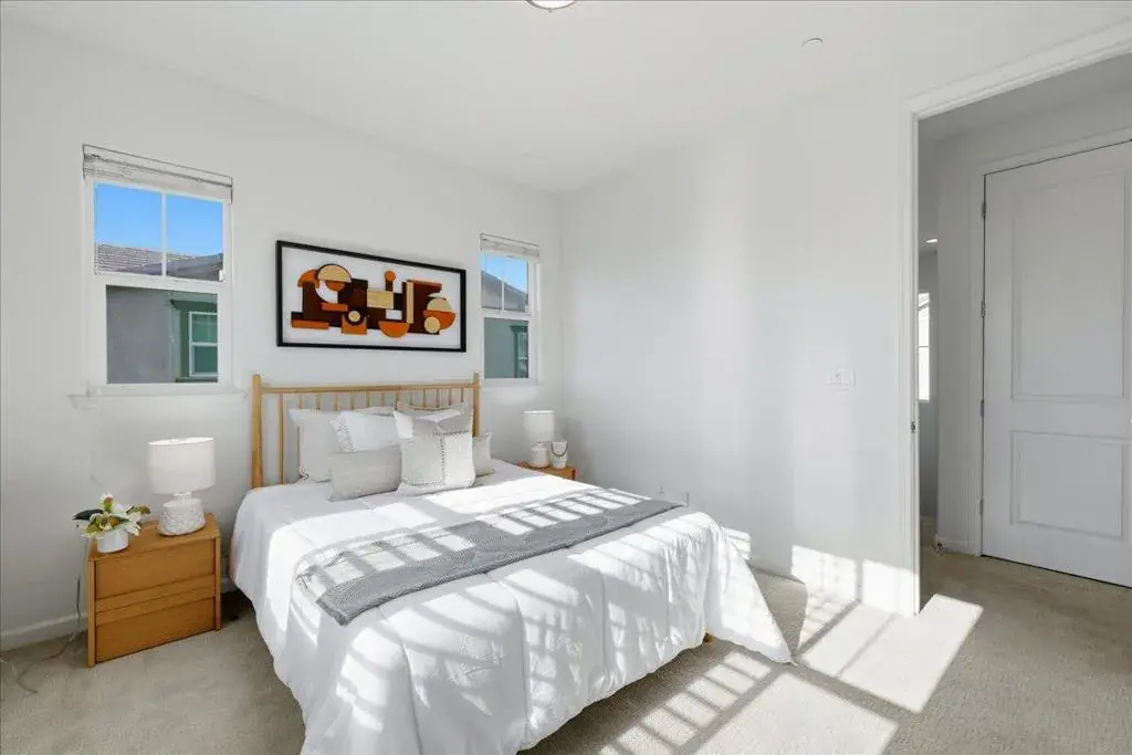 Beautiful end-unit townhouse located in a top-rated Fremont school district! This upgraded home offers approximately 2,061 sq ft of bright, open living space with high ceilings and abundant natural light. The ground level features a private suite with a full bathroom, ideal for guests, extended family, or a home office. The main living level showcases an open-concept floor plan with recessed lighting, elegant tile flooring, stainless steel appliances, and a large quartz kitchen island perfect for cooking and entertaining. An oversized balcony off the living room provides an ideal space for outdoor dining and gatherings. The spacious primary suite includes a generous walk-in closet and a luxurious en-suite bathroom with dual vanities, soaking tub, and separate shower. Additional highlights include a 2-car side-by-side garage, in-unit laundry, central A/C, tankless water heater, and more. Ideally situated near 16-acre Northgate Park, with easy access to Alameda Creek Trail, community parks, and Coyote Hills. Walkable to a variety of restaurants and popular markets including Ranch 99, Whole Foods, and Safeway. Convenient commuter access to I-880, Highways 84 & 92, and BART, with a short commute to Meta, Google, Tesla, and many other major tech companies.