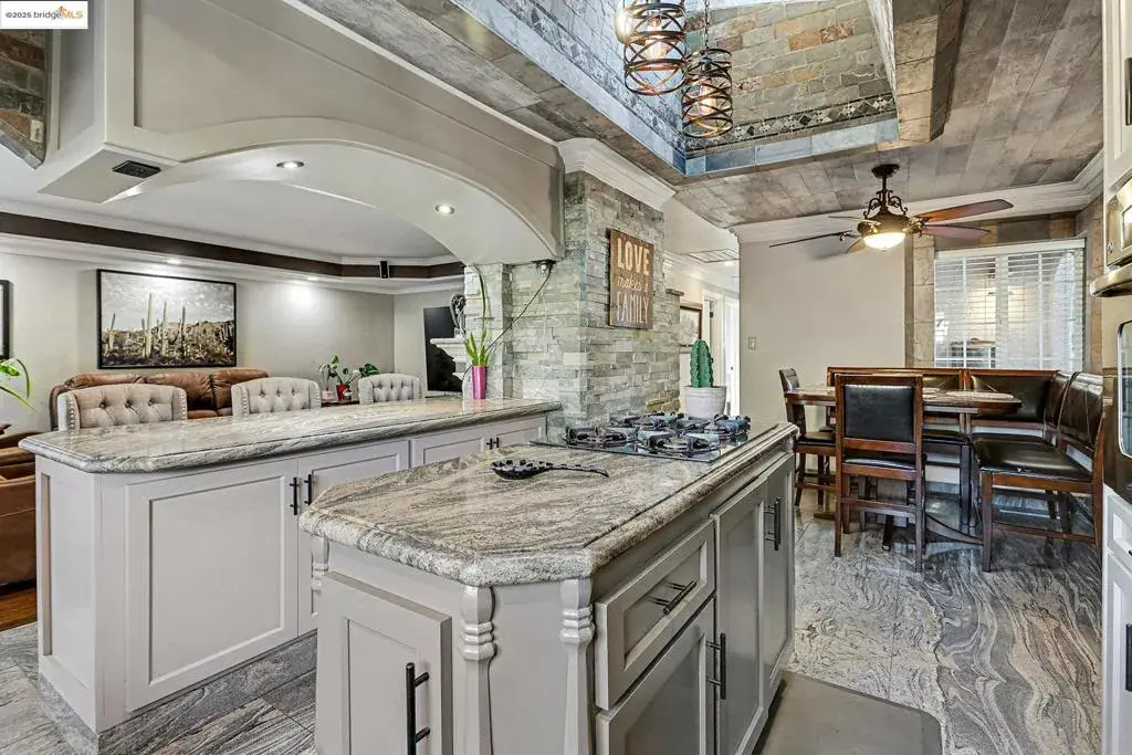 Rare Irvington opportunity w/built-in flexibility & long-term upside. Positioned at the end of a cul-de-sac w/no rear neighbors, this property offers privacy rarely found in Fremont. The expansive single-story layout lives beautifully as a spacious single-family home while also offering exceptional adaptability for multi-gen living or rental income. A permitted, oversized primary suite addition is ideal for ADU conversion w/private access & a detached 3-car garage/workshop presents additional ADU or guest house potential(buyer to verify). Inside, enjoy two separate living spaces, both w/fireplaces. The living room features a striking wood coffered ceiling & built-in TV, while the family room offers a second comfortable gathering space; perfect for everyday living or entertaining. Extensive upgrades include PAID SOLAR, newer roof, newer HVAC system, new carpet, solid-core doors, upgraded baseboards, vaulted ceilings, crown molding, rounded corners, stamped concrete driveway & backyard, and granite finishes throughout interior & exterior spaces. Outdoor amenities include a covered spa, granite outdoor kitchen, basketball courtyard, RV access, and tropical landscaping with a large lawn play area. Convenient access to I-680 and I-880 and located near top-rated Irvington schools.