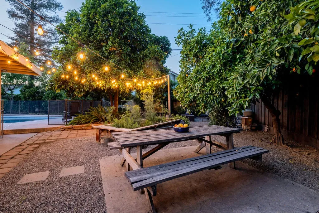 Outside, your California lifestyle comes to life. Take a refreshing dip in the large pool beneath mature shade trees, host dinners al fresco on the patio, or cultivate your farm-to-table dreams with a raised garden bed and fruit from multiple trees, including: orange, tangelo, grapefruit, meyer lemon, lime, guava, mandarinquat, loquat, nectarine, peach, pomegranate (landscape maps are included with the sale).