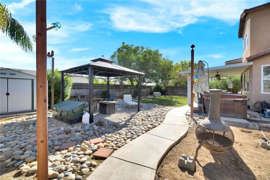 Additional outdoor features include added concrete work for custom usability, a charming gazebo for shaded gatherings, and a tool shed situated on a cement pad for extra storage and convenience.