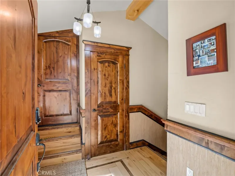 Inside, quality craftsmanship is on full display with hickory hardwood floors and a vaulted hickory ceiling that add warmth and character throughout the home. The chef’s kitchen is both elegant and functional, featuring custom knotty alder cabinetry, stone countertops, an oversized pantry, and stainless steel appliancesideal for entertaining or everyday living.