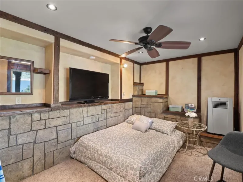 The primary suite offers stunning lake views with direct access to the deck and spa. The spacious primary bathroom features an oversized shower and walk-in closet. The fourth bedroom is privately situated on its own deck level with separate access, making it ideal for guests. The home also includes a game room, an oversized laundry room, and a neighboring office that could easily serve as a fifth bedroom.