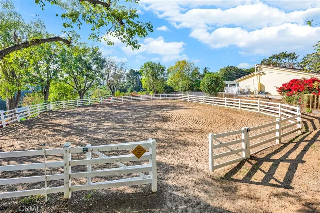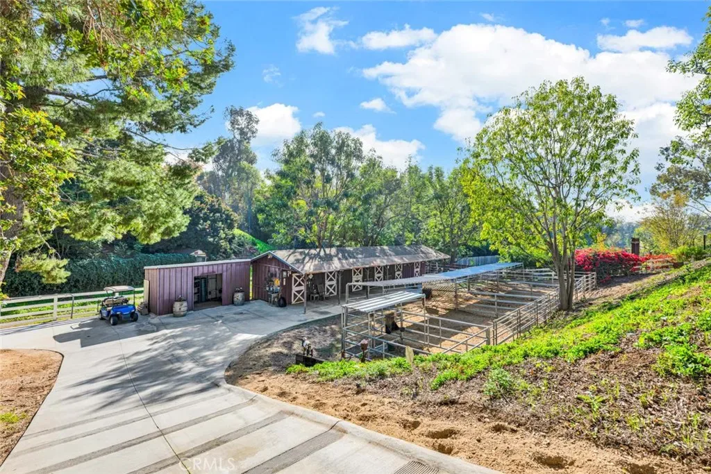 Welcome to 1419 Richman Knoll, a Sprawling Equestrian Estate Features a Single-Level Ranch Home Nestled on a Tree-Lined Cul-de-Sac Street in the Highly Sought-After Green Acres Community of Fullerton. Situated on a Usable Acre Lot with Equestrian Facilities, Pool, Spa, and Multiple RV Parking Spots, this Dream Home Showcases a Total of Six Bedrooms with Four and a Half Bathrooms. The Main House Features Four Bedrooms, Two and a Half Bathrooms, and 3,388 SqFt. The Larger 592 SqFt. ADU Enjoys a Family Room, Kitchenette, Bedroom and Bathroom. The Secondary 370 SqFt. Studio Unit ADU Offers a Dual Family/Bedroom Area, Kitchenette, Office Nook, Bathroom, and Direct Access to an Outdoor Deck Crafted With Long-Lasting Trex® Decking. In the Main House the Formal Living Room Features Wood-Beamed Ceilings, and Cozy Fireplace. The Family Room Includes a Dining Area with Fireplace and Wet Bar. Each Room Showcases Dual 12-Foot Glass Walls That Seamlessly Retract Into Concealed Wall Pockets, With Integrated Custom Retractable Screens, Creating Seamless Indoor-Outdoor Living to the Backyard. The Formal Dining Room Sits Adjacent to the Family Room and Kitchen. The Gourmet Kitchen Enjoys Vaulted Ceilings, Granite Counters, Two Copper Sinks, Dual Ovens, Wine Fridge, Warming Drawer, Six Burner Stove, Walk-In Pantry, and Breakfast Nook with Built-In Desk Area and Backyard Access. The Private Yard Features a Resort Style Pool, Spa, Water Features, Outdoor Kitchen with Built-In BBQ and Mini Fridge, Covered Patio, Pergola, Additional Outdoor Trex® Deck, Pavers, Firepit, Large Grass Area, Landscape Lighting, and Multiple Seating Areas. Full Equestrian Amenities Equipped with Power, Water, Lighting, Outdoor Sink, Four Box Stalls, Three Oversized Pipe Stalls and One Mini Horse Stall, Tack Room, Feed Room, Storage Room, Wash Station, and Riding Arena with Lighting. Direct Access to Miles of Fullerton Loop Riding Trails Perfect for Walking, Biking, or Riding. Indoor Laundry Room with Built-In Cabinets and Sink. Three Car Garage with Built-In Storage. Centrally Located by Award-Winning Schools Including Blue Ribbon Laguna Road Elementary and Troy High School, Shopping Centers, Restaurants, Fullerton Golf Course, and St. Jude Hospital. 1419 Richman Knoll is a Must See!!