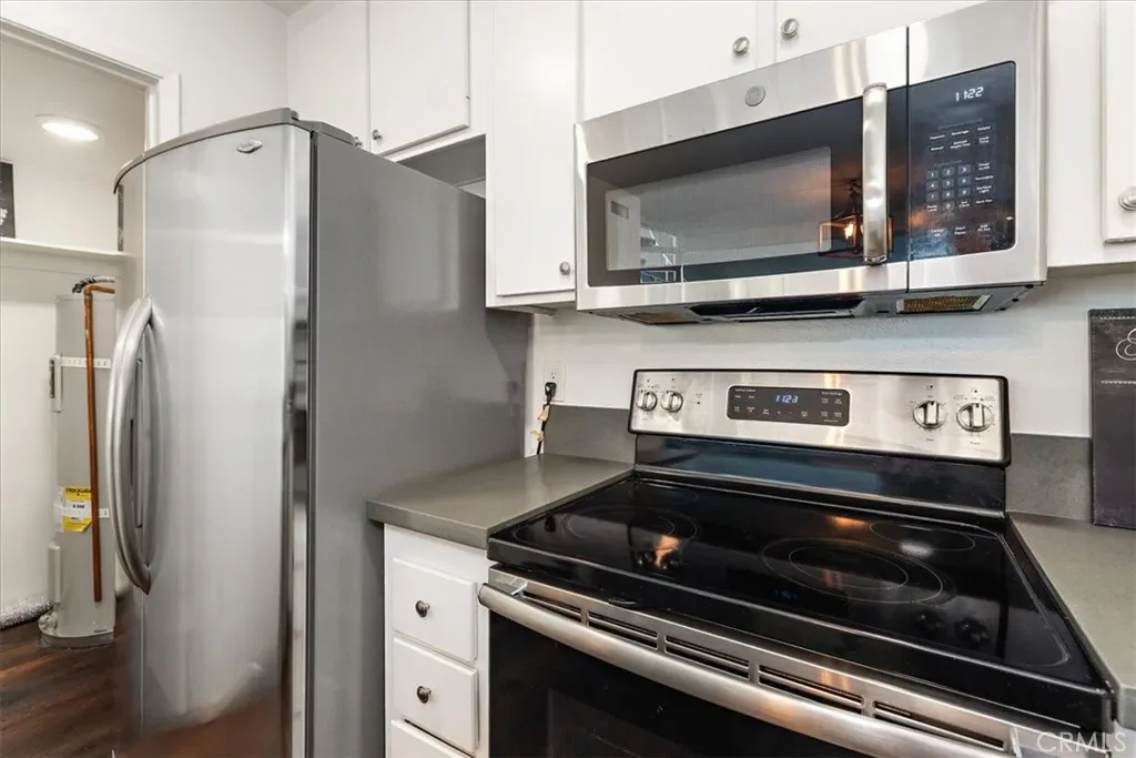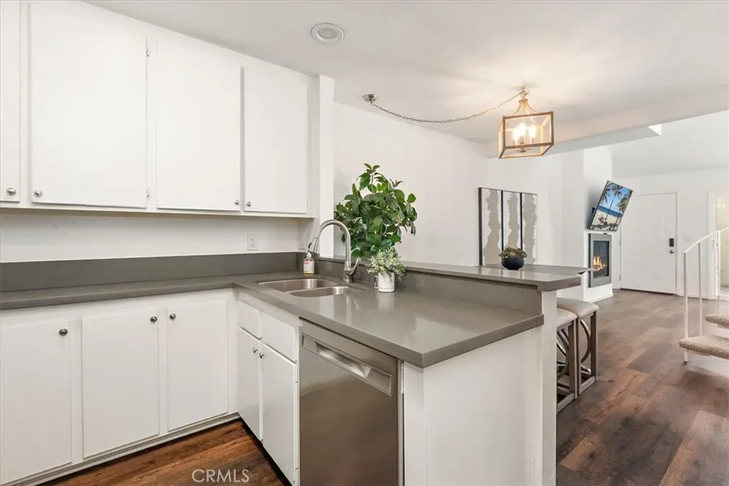 Tucked inside Fullerton’s Arbor community, 2900 Madison Ave offers a bright, loft-style layout with a sense of volume that makes its 756 square feet live larger than expected. Before you even step inside, the home is introduced by a private front patio entry that creates a charming sense of arrival, with the community fountain just outside the unit adding a peaceful, tucked-away feel. Inside, the main living area feels open and airy, anchored by dramatic ceiling height, warm wood-look flooring, and a sculptural staircase that gives the home real character. The kitchen and dining area flow easily from the living space, while the upstairs bedroom retreat adds separation and privacy from the main level. An inside laundry room adds everyday convenience, and the overall layout feels both functional and visually distinctive. Set within the gated Arbor community in a location convenient to Cal State Fullerton, shopping, dining, and freeway access, this home offers a low-maintenance lifestyle with style, comfort, and a unique sense of space.