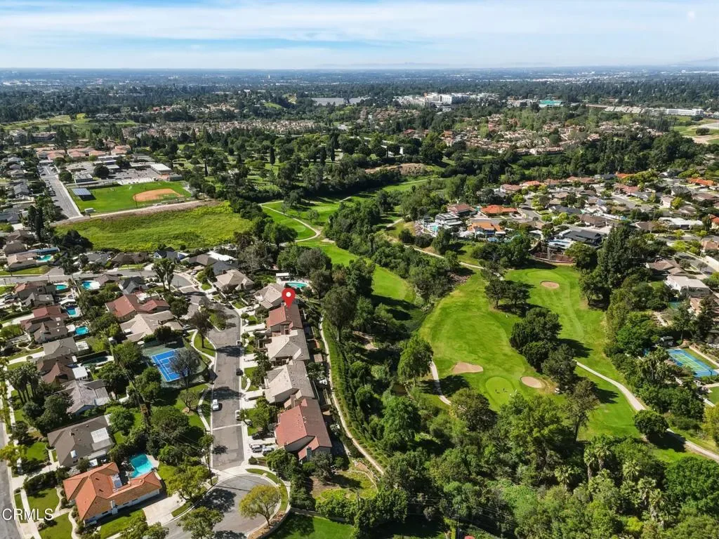 Situated on a quiet and private street in the heart of Fullerton, this spacious 3-bedroom, 3-bathroom home offers sweeping views of the lush fairways of Fullerton Golf Club. The property boasts a thoughtful layout that blends indoor comfort with outdoor serenity. Upon entry, you’re greeted by soaring ceilings, abundant natural light, and a dramatic staircase that enhances the home’s open and inviting atmosphere. The main level features expansive living and family rooms, a formal dining area, and a bright kitchen with views of the backyard and golf course beyond. Upstairs, the primary suite opens to a private balcony overlooking the greenery, creating a tranquil retreat. Outdoor living is equally impressive, with two generous patio spaces, mature landscaping, and a built-in fire pit–perfect for relaxing or entertaining while enjoying unobstructed golf course vistas. Community amenities include a tennis court and swimming pool just steps away. With its prime location, spacious layout, and scenic backdrop, this home offers a rare opportunity to enjoy golf course living in Fullerton.