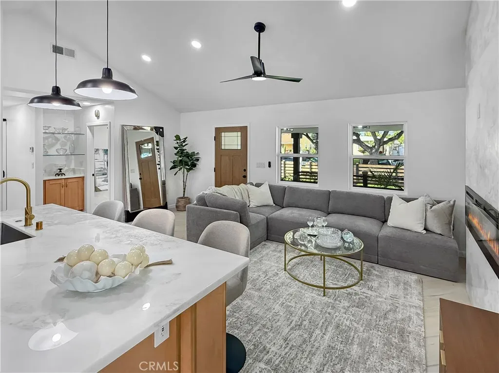 VERY RARE opportunity for a massive 10,000+ sqft lot with great ADU potential for this area in Fullerton! DON’T MISS OUT on this recently updated and spacious TURNKEY home located in a highly desired neighborhood of Fullerton! To start off, this home boasts 3 bedrooms and 2 bathrooms including a large master suite with its own luxurious master bathroom and a walk-in closet! Throughout the home you’ll find LED recess lighting, premium vinyl waterproof flooring, a stunning open-concept kitchen containing high-end quartzite countertops, a large center island and wood shaker cabinets with self-closing drawers! Also, along with the remodeled kitchen there will be a full high-end stainless steel appliance package and the barn-door covered laundry area comes with a sink and washer/dryer included! For the exterior, the front yard contains an attractive curb appeal with custom perimeter wood fencing and a walkway that leads to the inviting front porch! Then the enormous backyard contains a spacious covered patio area perfect for seating and outdoor entertainment, freshly laid sod throughout the yard including timed sprinklers and a concrete driveway that leads to the TWO 1-car garages making the entire backyard a great space for future family gatherings! In addition, this home offers a 200 amp electrical panel, high efficiency dual-pane vinyl windows throughout and central air/heating! To top it all off, this home is conveniently located within minutes of the 91 freeway and Downtown Fullerton which contains beloved shops, popular restaurants and entertainment!