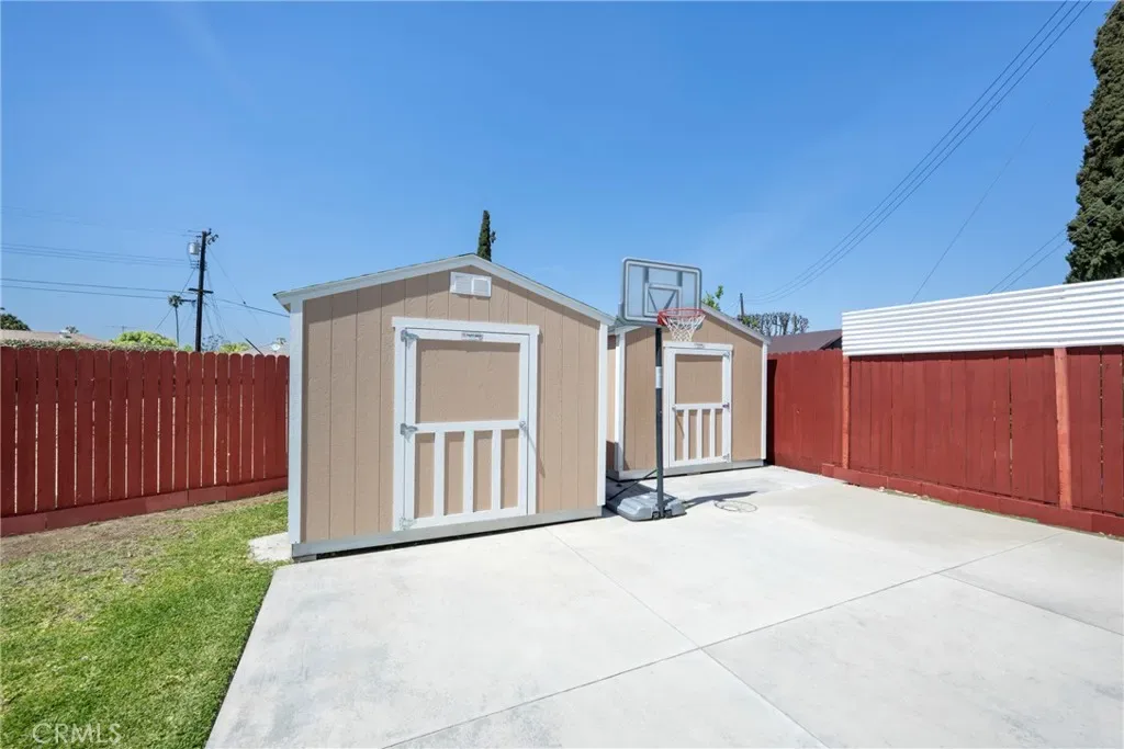 The spacious backyard offers a sprawling lawn, newer wood fencing, two large Tuff Sheds, and plenty of room to customize or add an ADU.