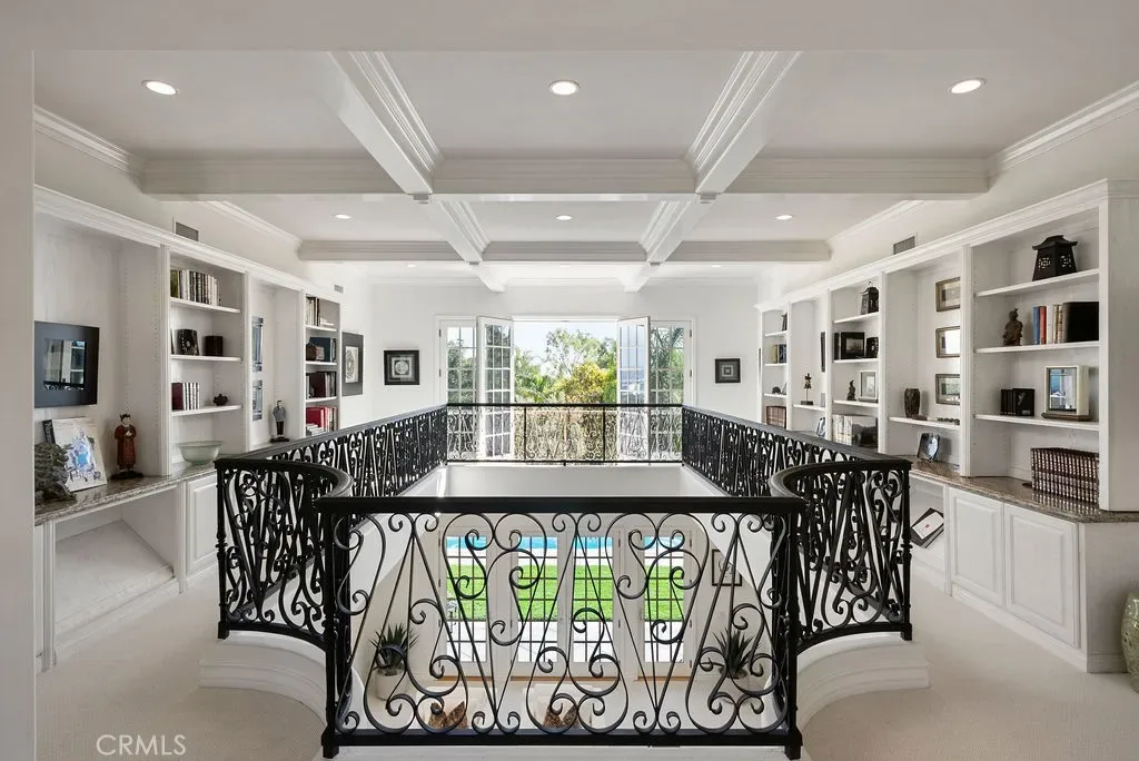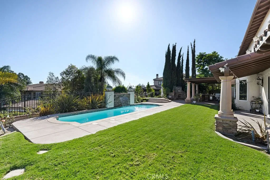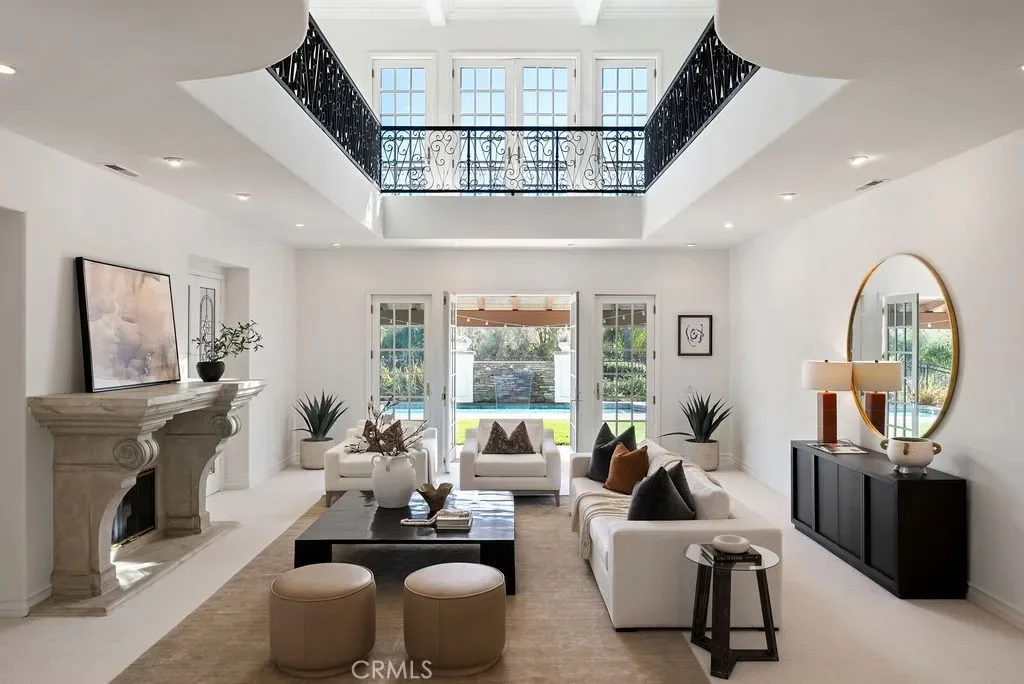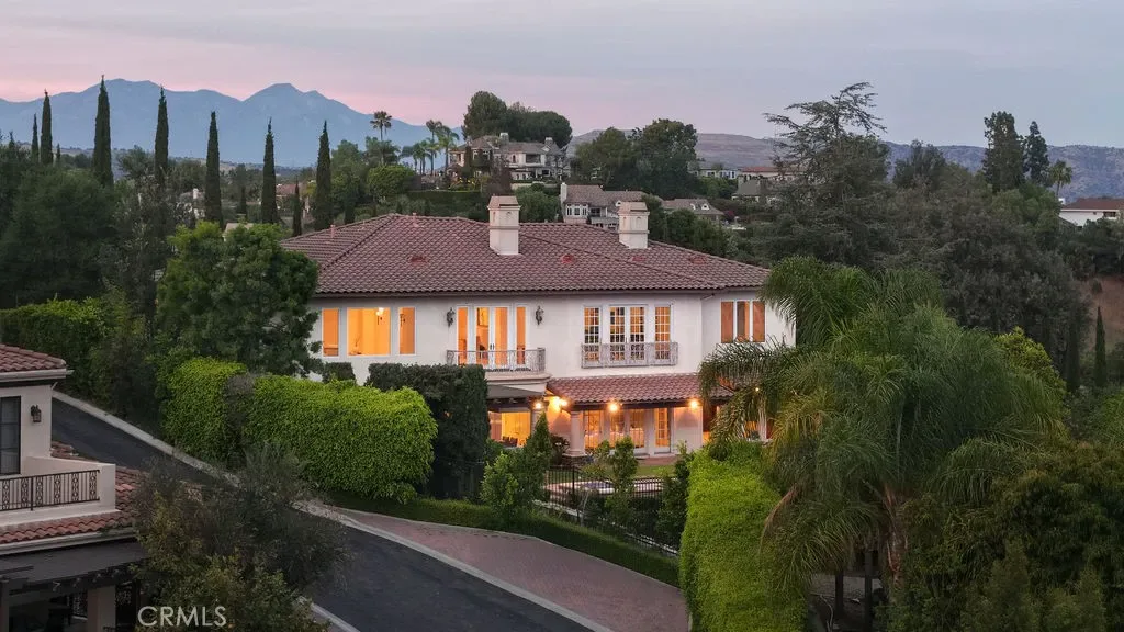 Tucked behind the gates of a quiet, private cul-de-sac, this extraordinary Mediterranean estate is a rare masterpiece of grandeur, seclusion, and architectural elegance. Over 6,600 square feet set on more than half an acre, this residence is a true sanctuary designed for those who expect nothing less than exceptional. Soaring ceilings and an abundance of natural light create a breathtaking sense of scale and openness. The formal living room stuns with a dramatic two-story ceiling, a striking custom fireplace, and a captivating overlook from the upstairs library above. Dual glass doors beckon you into the bonus room providing a perfect private office sanctuary, media room or game room. French doors draw you outward to an awe-inspiring retreat, seamlessly blending indoor and outdoor living. The chef’s kitchen is both sophisticated and commanding—featuring granite countertops, 60” Viking range, Sub-Zero refrigeration, wine fridge, and richly stained custom cabinetry. The adjoining oversized family room offers warmth and comfort with a built-in media center, perfect for both intimate evenings or lively gatherings. Main level offers two private bedroom suites, each with its own full bath, ideal for guests or multi-generational living. Upstairs reveals a stunning mezzanine complete with full library and gallery-style walls—an inspiring space to showcase art and treasured collections. The primary suite is simply spectacular, capturing sweeping views and a private retreat with flexible sitting area, perfect for a nursery or gym. A two-sided fireplace adds ambiance and warmth, and a private balcony invites you to enjoy the panoramic vistas. The spa-inspired primary bath features a luxurious soaking tub set within its own elegant alcove, dual vanities, makeup station, and expansive walk-in closets. Two additional sizeable secondary bedrooms with their private baths also adorn the second level living area. Step outside to your own resort-caliber paradise. An impressive entertaining pavilion awaits, complete with built-in BBQ, fireplace, sparkling pool and spa, and lush lawns framed by mature landscaping—designed for unforgettable gatherings or relaxation. Perfectly positioned to capture breathtaking views, the home’s exterior is equally captivating, with a paver driveway, covered porch, and a grand arched double-door entry. This is more than a home, it’s a statement of timeless luxury, offering an unparalleled sense of tranquility, beauty, and endless horizon.