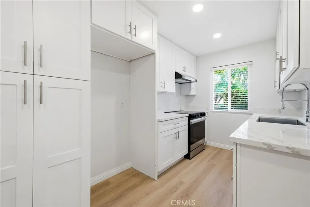 Completely remodeled ground-level end-unit condominium in the serene, resort-style gated community of Club Acacia. This 1 bedroom, 1 bath unit offers a private enclosed patio with elegant stone flooring, perfect for relaxing outdoors. Featuring a double-sink vanity in the bathroom, recessed lighting throughout, and a 1 car garage detached, every detail has been thoughtfully updated. Ideal for a college student, single resident or couple seeking a peaceful, pet friendly lifestyle in the heart of Fullerton. Located near major freeways, popular restaurants, markets, and universities. You’ll also enjoy being just a short drive from downtown Fullerton and only a few miles from Disneyland Park.
