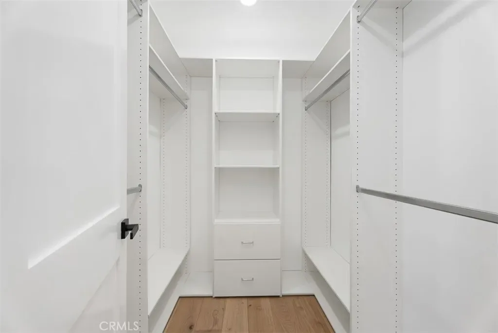 Wide plank white oak floors run throughout the home, anchoring the light-filled interior and complementing the clean, modern palette. The kitchen is both elegant and functional, featuring custom cabinetry, expansive quartz countertops, designer tile backsplash, and a layout ideal for everyday living and entertaining alike.