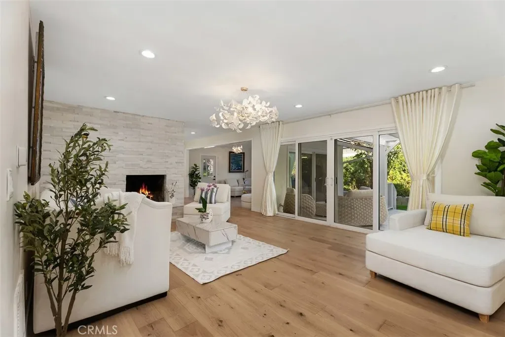 The living and dining spaces are warm and inviting, centered around a statement fireplace and opening seamlessly to the outdoors through large sliding glass doors. A spacious bonus/entertainment room provides exceptional flexibility; perfect for a media room, playroom, home office, or guest retreat.