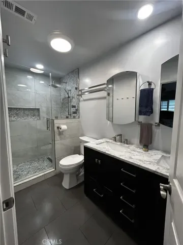 Well maintained single story home located in a quiet residential neighborhood in Gardena. This property offers a comfortable and functional layout with updated finishes, including a modern bathroom featuring custom tile work, sleek fixtures, and a spacious vanity.