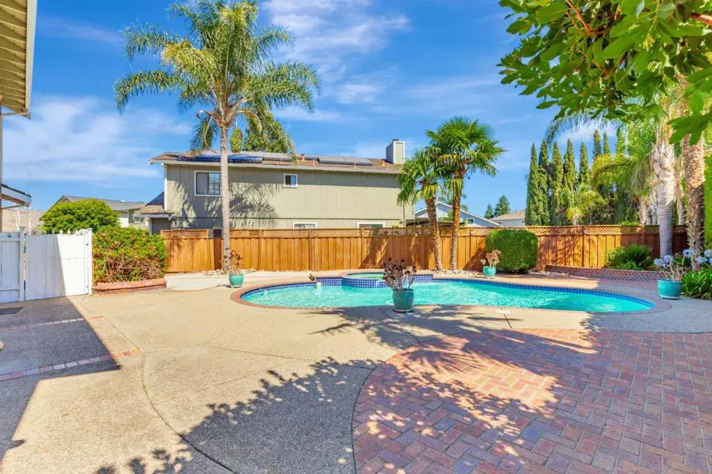 Price Reduced! Discover this beautifully maintained 4-bedroom, 3-bath residence in the heart of Gilroy, offering over 2,000 sq. ft. of stylish, functional living. Featuring high ceilings, an elegant formal dining area, and a warm family room with fireplace, the home balances comfort and sophistication. A well-appointed kitchen showcases ceramic countertops, garden window, and modern appliances. Flexible layout includes a ground floor bedroom and full bath, perfect for guests or work-from-home needs. Step outside to a private backyard retreat with in-ground pool and spa, plus storage shed. Amenities include in-home laundry, central AC, forced-air heat, and ceiling fans. Located in the sought-after Gilroy Unified School District, near shopping, parks, and dining.