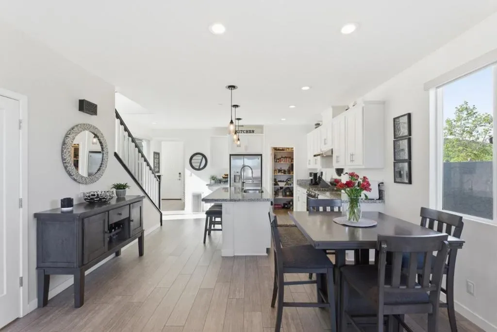 Welcome to 1325 Hernandez Way, a beautifully upgraded end-unit single family home on the coveted West side of Gilroy. Built in 2020, this home is only 6 years old and has been immaculately maintained. Positioned on a premium lot with only one neighbor, it provides privacy and offers an open, light-filled layout with dual pane windows and high ceilings. The kitchen features granite countertops, reverse osmosis, and opens to the dining area and living room. A bedroom and full bathroom on the ground floor provide flexibility for guests or multi-generational living. Upstairs, the primary suite offers a walk-in closet, en suite bathroom, and peaceful views. Modern amenities and energy efficient upgrades include solar panels, dual-zone heat and A/C, a WiFi-enabled tankless water heater, owned whole-house water purification system with sediment filter and softener, and integrated smart home features like wireless garage door opener, WiFi sprinklers, thermostats, smart lighting and video doorbell. Very low utility costs! Those looking for simplicity will appreciate the low-maintenance yard with professionally installed pavers. Exterior painted in 2025. EV-ready and equipped with Ring security, this move-in ready home blends comfort, convenience, and modern upgrades in a private setting.