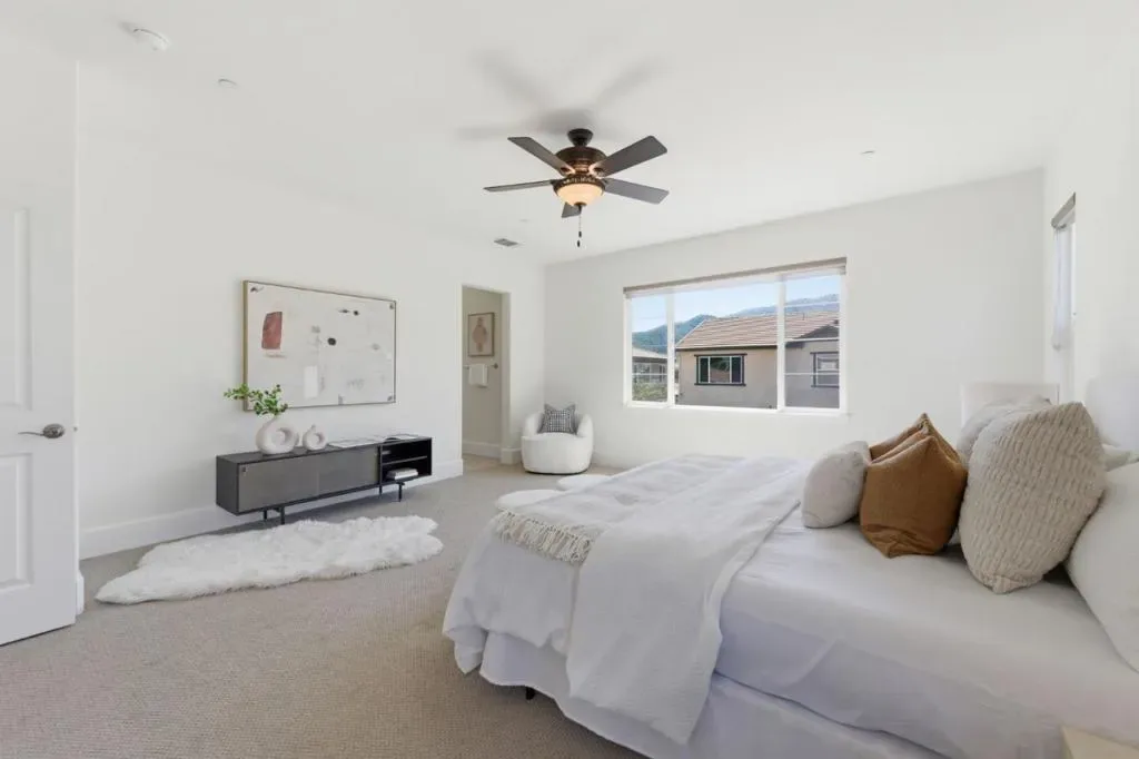 Welcome to this beautifully maintained 5-bedroom, 4.5-bathroom home built in 2017, located in a desirable Gilroy neighborhood. This spacious residence features an open-concept floor plan with abundant natural light, ideal for both everyday living and entertaining. The well-appointed kitchen includes a large island, granite countertops, stainless steel appliances, and ample cabinetry, seamlessly connecting to the dining area and family room. A bedroom and full bathroom on the main level provide added flexibility for guests or multi-generational living. Upstairs, the primary suite offers a comfortable retreat with mountain views, a spa-like bathroom, and generous closet space. Additional bedrooms are well-sized and versatile. The low-maintenance backyard offers a functional outdoor space for relaxation or entertaining. Additional features include high ceilings, recessed lighting, and modern finishes throughout. Conveniently located near parks, shopping, dining, and major commuter routes. Move-in ready.