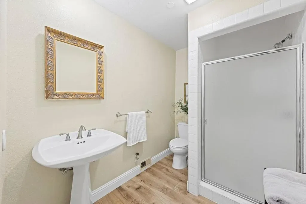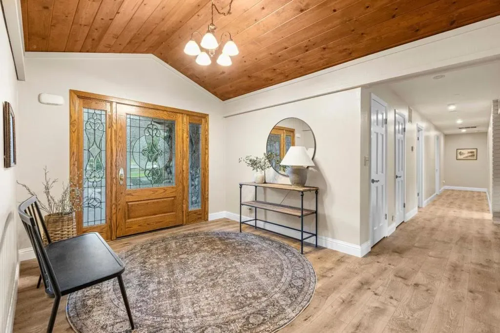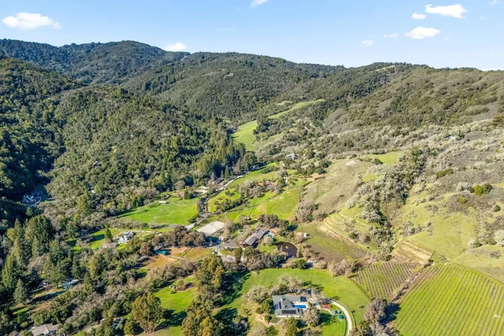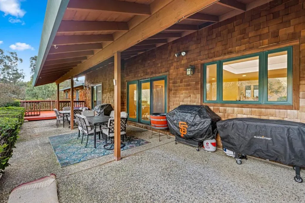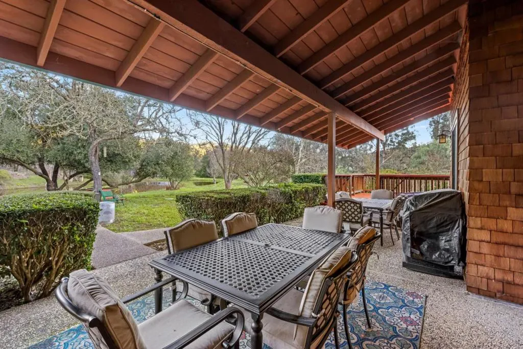 A great multi use property west of Gilroy in the bucolic Redwood Retreat wonderland. An estate with two homes on 14+acres. FIRST HOME: Approximately 4000 SF with 5 bd 3 ba, or configure for office, den, Au Pair or multi-gen living. Separate family, living, dining and spacious eat in kitchen. Delightful SS kitchen with new double oven, compactor, and dishwasher. Large bedrooms, 3 with walk-in closets and built in storage. Laminate plank flooring and refreshed paint. SECOND HOME: Approximately 1900 SF, 2 bd 2 ba, SS Kitchen Aid appliances. Remodeled baths. Hardwood floors and refreshed paint. GARAGE: Attached is a four-door garage with capacity for 8 cars with workbench and storage. Enjoy the views of the outside hills, Gunite POOL, wildlife from the expansive windows, or appreciate them from the multitude of patios and decks. Outside are EQUESTRIAN delights. 16 stall breezeway barn with tack room, turnouts, new hot water heater, wash area, and laundry. Numerous pastures, a professional 100×240 arena, and stand-alone hay barn. Do not miss the Cabernet vineyard, chicken coop, gazebo with fire pit, seasonal pond and outbuildings. Should power go off the entire property is serviced by auto start GENERAC generators. Leased solar. Homes are private, yet not isolated.