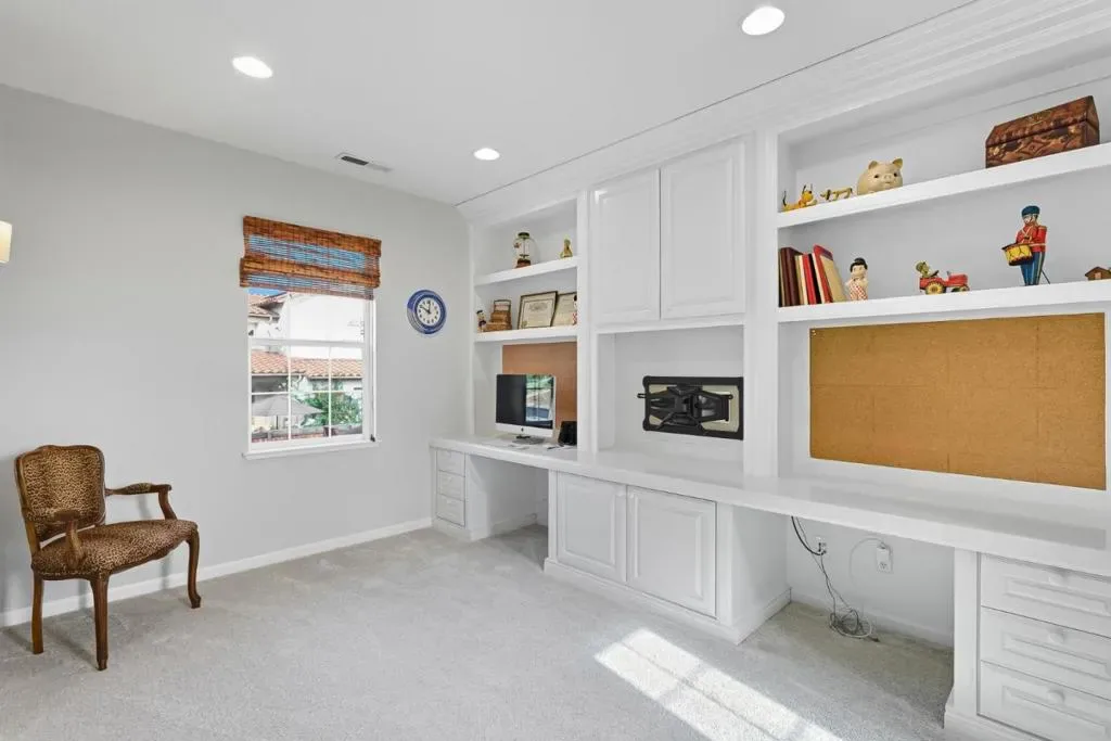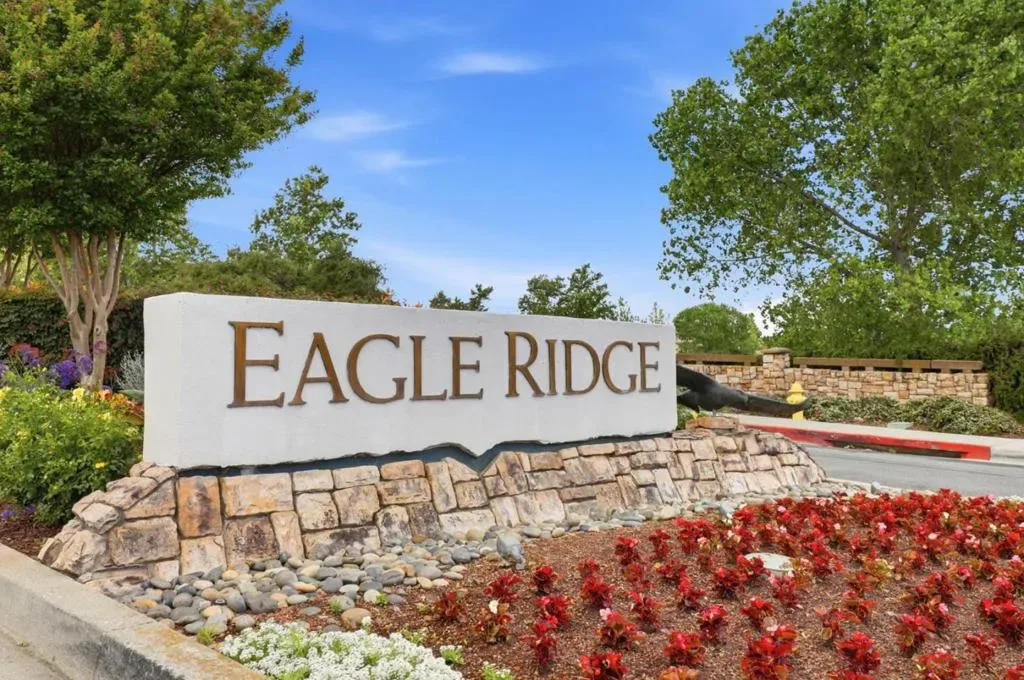 Welcome to this stunning Eagle Ridge Mediterranean former Shapell model home with 4 bedrooms and 3 full baths, one full large suite downstairs with double door. Property is loaded with upgraded options and special landscaping design. The property has an amazing view of city skyline and view of the rolling hill. It is ideally set across from open space for privacy. Features include hardwood floors, crown molding, custom built-ins, and high-end windows. Gourmet kitchen with large quartz counters, walk-in pantry, and breakfast nook opens to family room with beam ceiling, bay windows, and fireplace. French doors lead to a private courtyard for outdoor dining; backyard offers a sparkling low-maintenance pool. Luxurious primary suite with balcony, spa bath, and custom walk-in closet. Upstair bonus /study room with built-in shelves. Two gas fireplaces, dual zone for heating and AC, 3-car tandem garage with EV outlet, extra 6 parking spaces available for guests, 32 owned solar panels for minimal utility costs( approx $12 per month PGE bill ). Located in gated Eagle Ridge with Clubhouse, Pool, Basketball ball court , Tennis courts, Bocce Ball, Organized activities, Parks, Walking Trails, and low HOA fees.