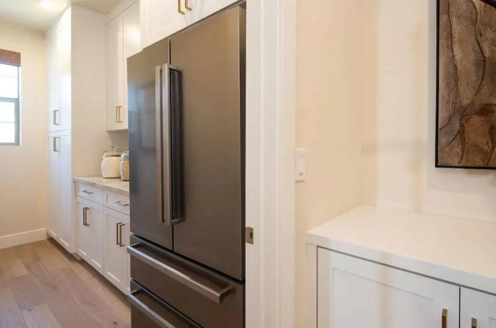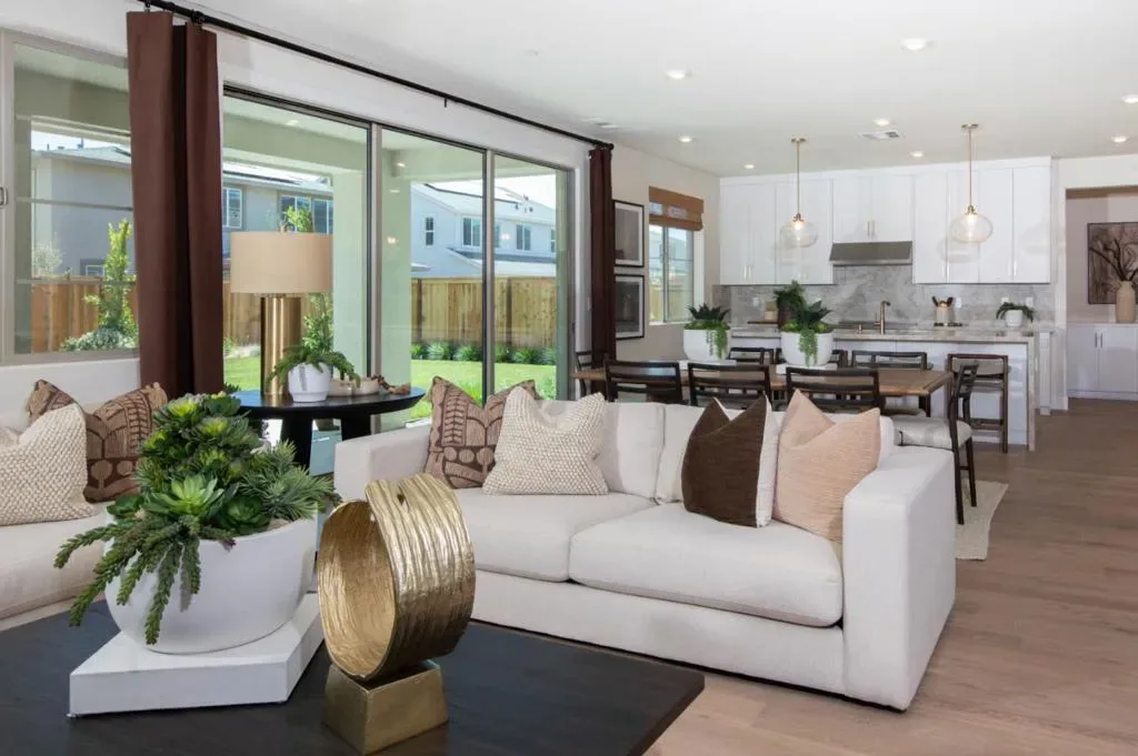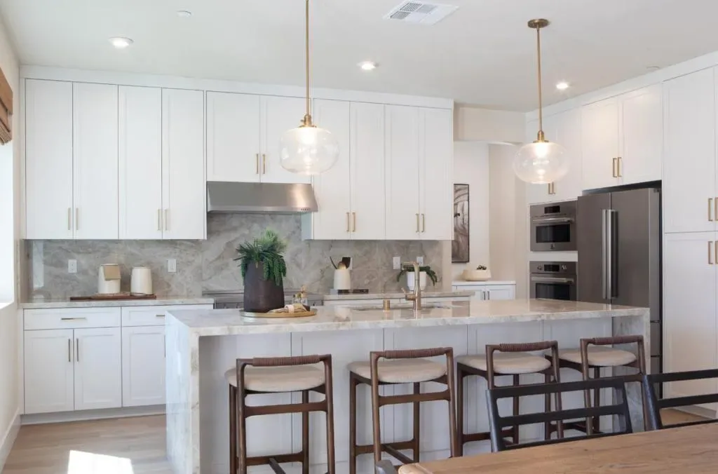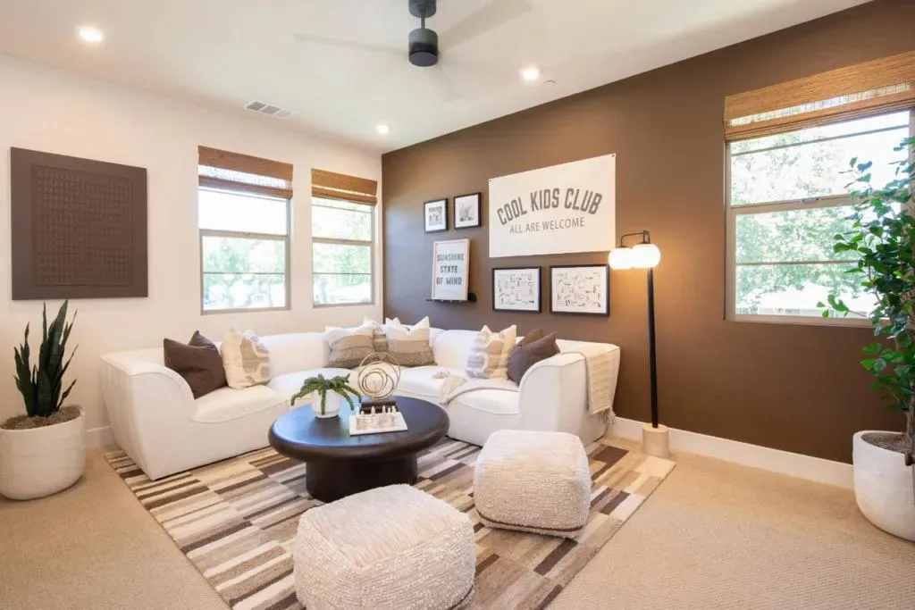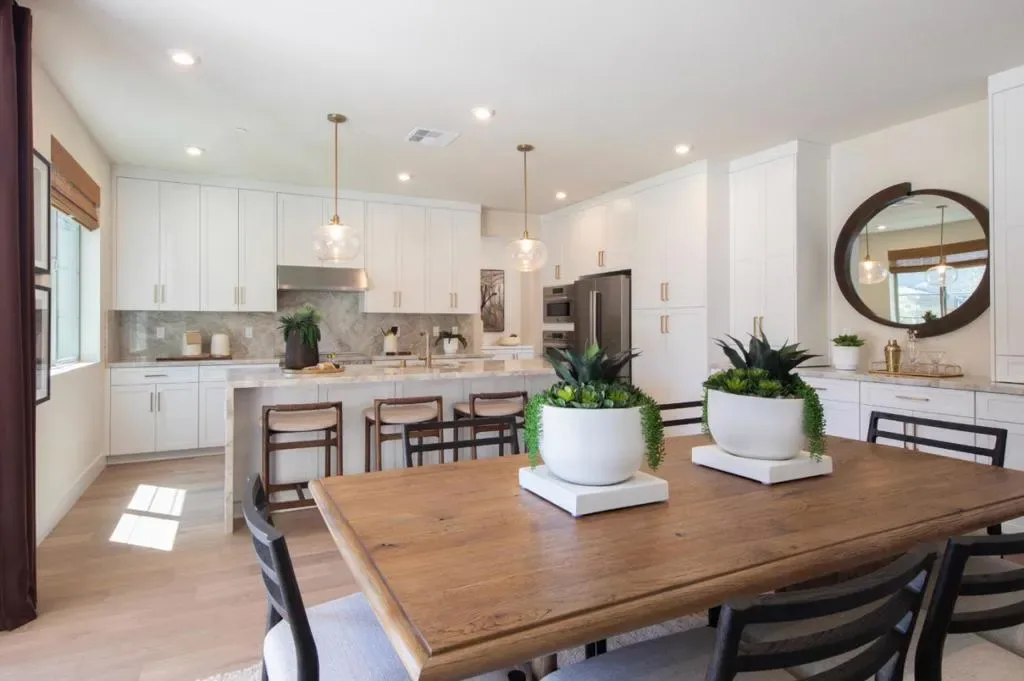 RARE OPPORTUNITY TO OWN THE MODEL HOME! Ideally positioned on a premium corner homesite within the Heritage on 6th Street community, this professionally designed model residence showcases over $200,000 in curated upgrades and elevated finishes. The Golden Glow design package features white cabinetry, champagne bronze fixtures, and a striking waterfall island anchoring the expanded gourmet kitchen with extended cabinetry and a secondary refrigerator in the pantry. Engineered wood flooring flows throughout. Exceptional features include all-electric systems and leased solar paired with a Tesla Powerwall 3 battery. The kitchen is further enhanced by a butlers pantry, Bertazzoni induction range, French door refrigerator, quartz countertops, and a spacious island. A dramatic two-story foyer opens to a light-filled great room with stacking glass doors leading to a covered loggia. The thoughtfully designed floor plan includes a first-floor bedroom with en suite bath. Upstairs, a central loft anchors secondary bedrooms, while the primary suite offers a private retreat. Custom decorator enhancements elevate the home throughout. The oversized, landscaped backyard features mature greenery and a bocce ball lane, creating a private outdoor setting ideal for everyday living and entertaining.