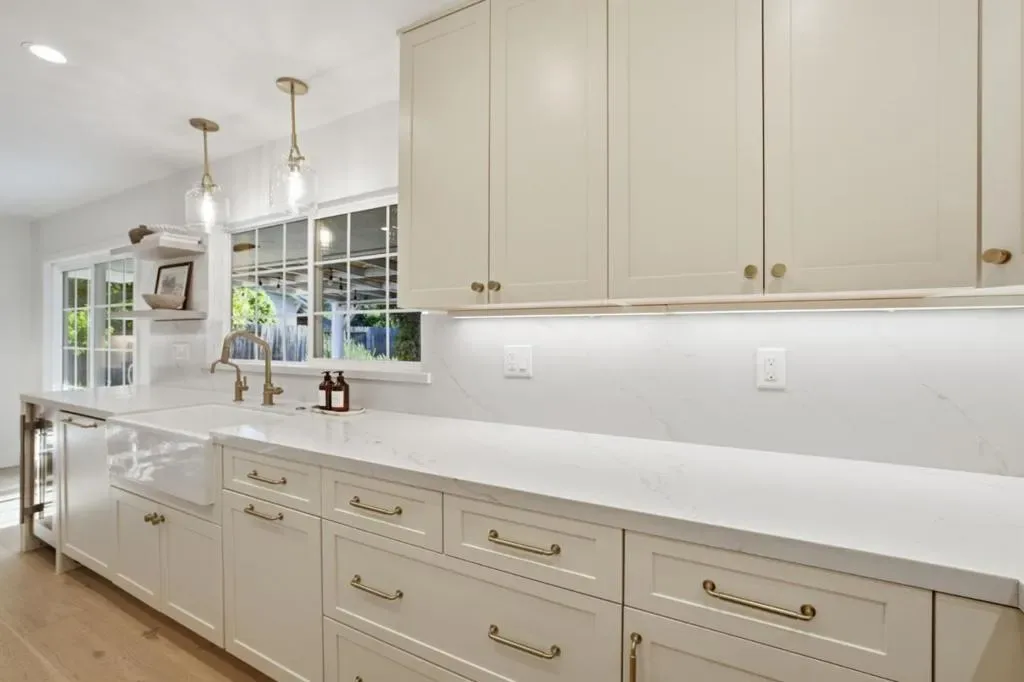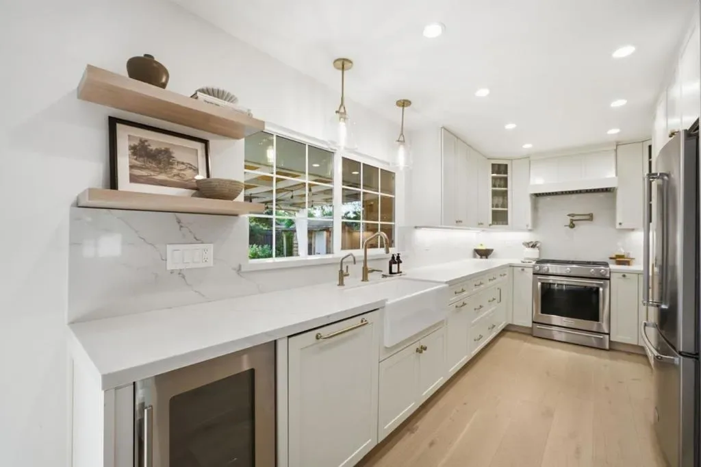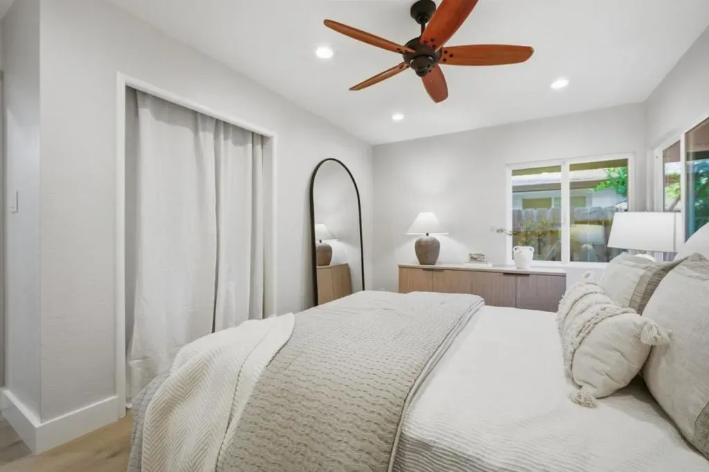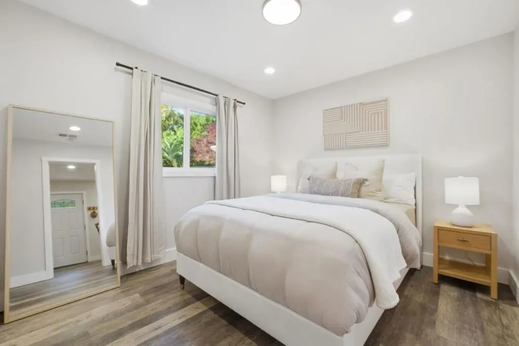 Located in one of Gilroy’s highly desirable neighborhoods, this home sits on a beautiful tree-lined street on a 10,000+ sq ft lot.Totaling 1,887 sqft with 5 bedrooms and 3 full baths (including new primary suite & Junior ADU).The garage was converted into a one-bedroom Junior ADU with its own entrance, kitchenette, full bath, and living area ideal for extended family, guests, or income potential!The remodeled home features a kitchen with custom soft-close cabinets, quartz countertops, fireclay farmhouse sink, beverage fridge, stainless steel appliances, panel-ready dishwasher, pot filler, custom range hood, and Brizo fixtures.Engineered white oak hardwood flooring and new paint throughout.The primary room includes a spacious walk-in closet with soft-close drawers.Upgrades include an owned water softener, Navien tankless water heater with recirculating pump, instant hot water, and a Moen leak detection system.Laundry room with custom cabinetry, quartz counters, and Calacatta backsplash.The exterior features new drip and sprinkler irrigation for easy maintenance.Tranquil backyard with artificial turf, garden beds, playhouse, and alley access.Conveniently located near schools, parks, shopping, dining, Gilroy Premium Outlets, Gilroy Gardens, and commuter routes this home has it all!