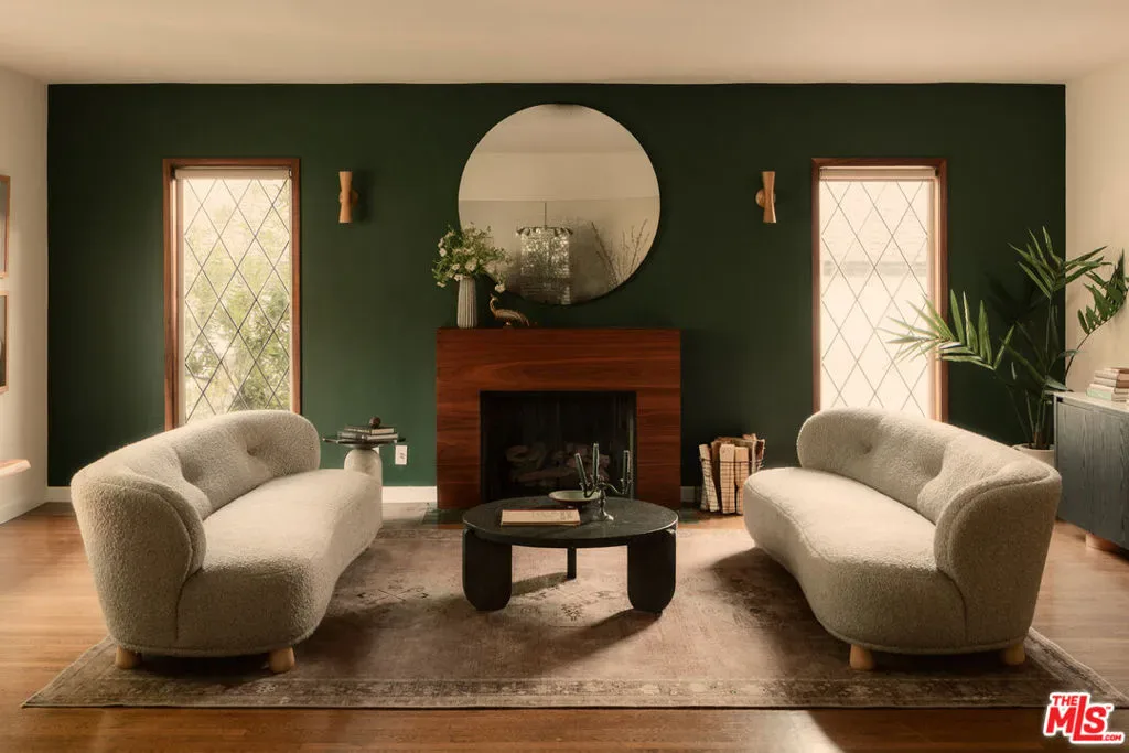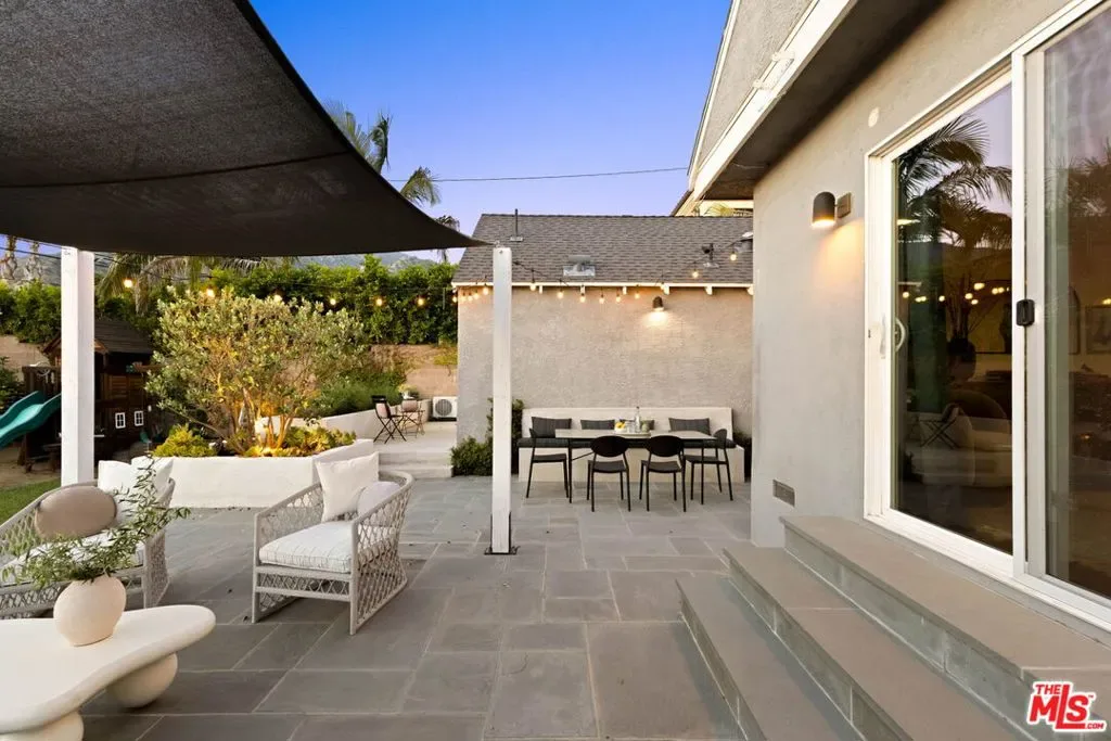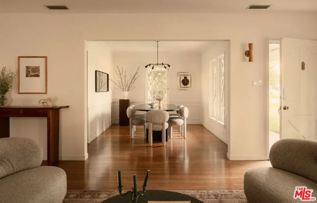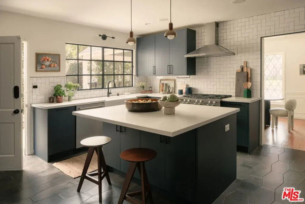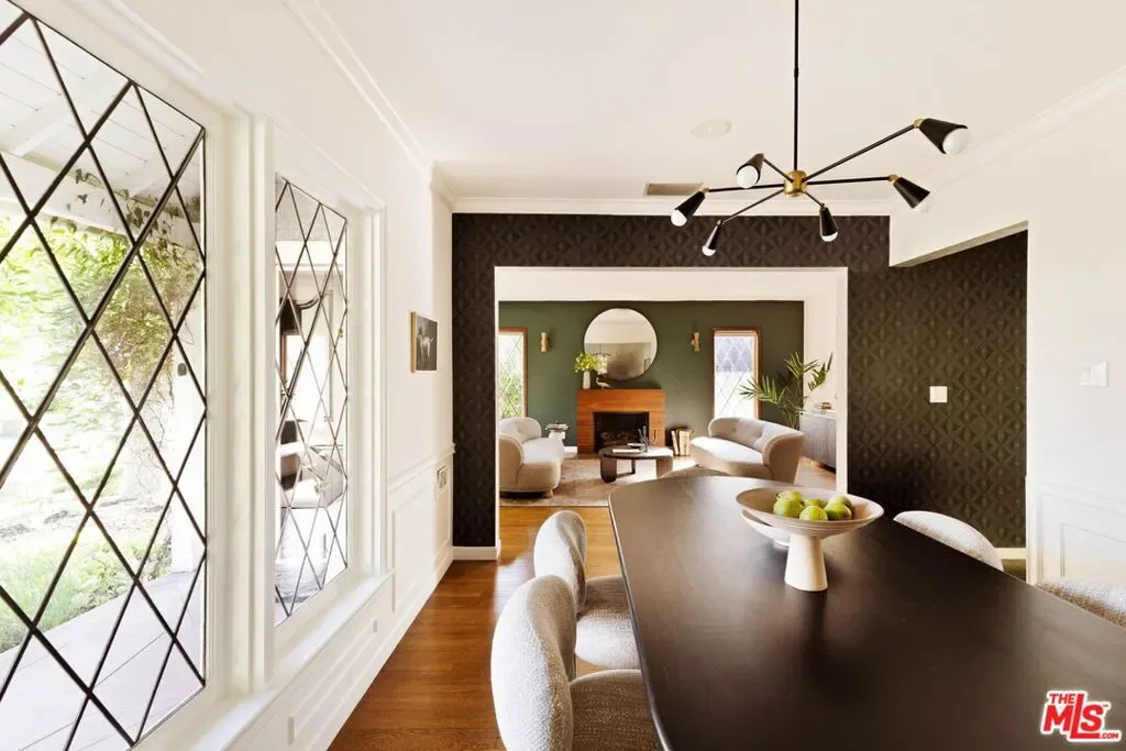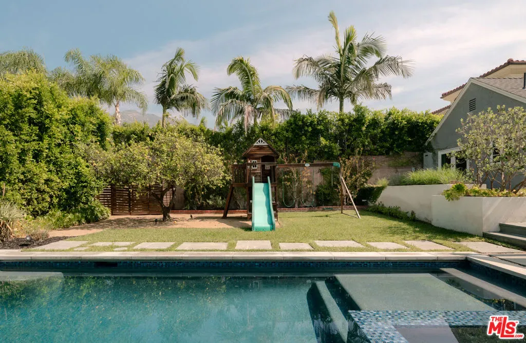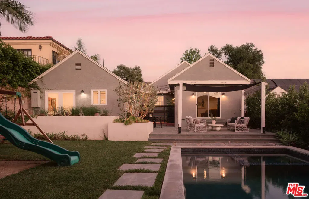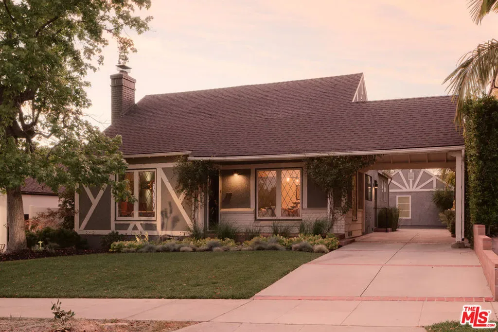 Set in prime Northwest Glendale, where the Verdugo Mountains rise dramatically as a natural backdrop, this Tudor residence offers a distinct sense of place: quiet, grounded, and deeply connected to the landscape around it. Behind its classic facade, framed by original diamond-pane leaded glass windows, the home captures light in a way that feels both timeless and quietly elegant. Inside, nearly 2,000 square feet unfold across a single level, where original hardwood floors and high ceilings establish warmth and architectural integrity, while thoughtful updates bring ease to everyday living. A porte-cochre, handcrafted sconces and custom built in shelving and desks further underscore the home’s enduring character. The oversized living room centers around a wood-burning fireplace with a custom walnut mantel with a Mission West tiled hearth, a warm focal point that carries into the formal dining room. The layout is both open and defined, with expansive rooms, clear sightlines but with moments of separation allowing for space to gather or have space. The kitchen, designed by 1000X Better, is generous in scale and thoughtfully executed. Caesarstone surfaces, a large pantry, Quercus & Co wallpaper, large island, lots of light & ample storage create a space that is elevated, functional, and inviting. Bathrooms and bedrooms, updated by designer Stacey Copeland, introduce a refined sense of play through pattern and texture including Hygge & West wallpaper, original built-ins & high-end design while maintaining the home’s timeless character. Primary suite is notably spacious, with a large walk-in closet, en suite bath with oversized shower & sliding glass doors that open to a natural stone patio, pool, spa and landscaped yard. Outdoors, the home truly expands: covered patio, built-in dining area under cafe lights, kids play structure, Schoolhouse sconces, large grassy area, decomposed granite areas create space for gathering, play, and relaxation. A large Liquidambar tree shades the home in front, while a highly productive lemon tree anchors the rear garden; all enhanced by drought-tolerant, native landscaping. Detached 1 bed, 1 bath permitted ADU with full kitchen offers exceptional flexibility for guests, multi-generational living, work from home, or income. Just around the corner, Brand Park offers multiple hiking trails, open green space, a Japanese tea house, an Arts & Culture library, Art Gallery & baseball diamond. Kenneth Village is moments away for coffee, fresh bread & pastries, Preschool & daily essentials. Glendale’s highly rated schools with diverse magnet programs, excellent city services, abundance of trees, proximity to nature and rating as one of the safest cities in California add value to your life, health and the resale value. This special home has that rare alignment of setting, design, location, function, style and amenities, where everything naturally becomes easier, calmer, more beautiful which we all yearn for.