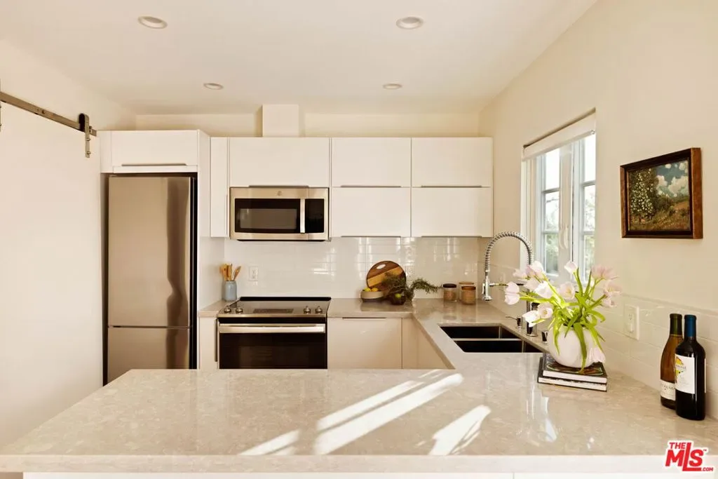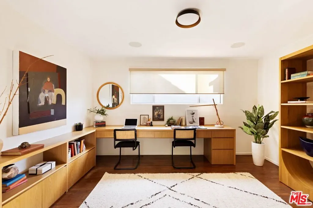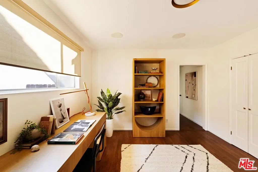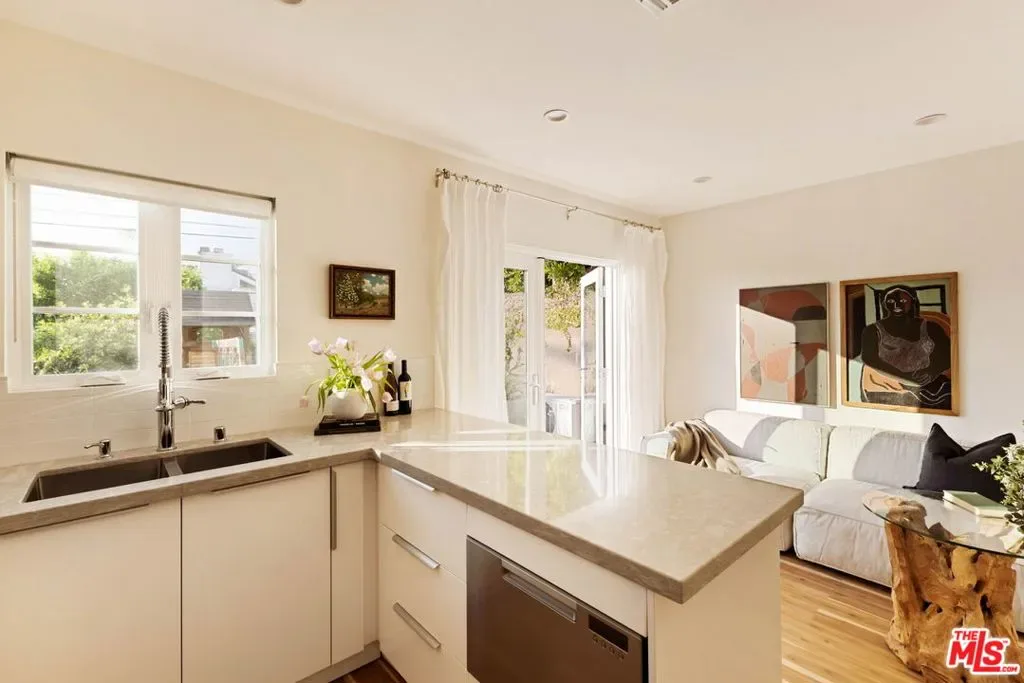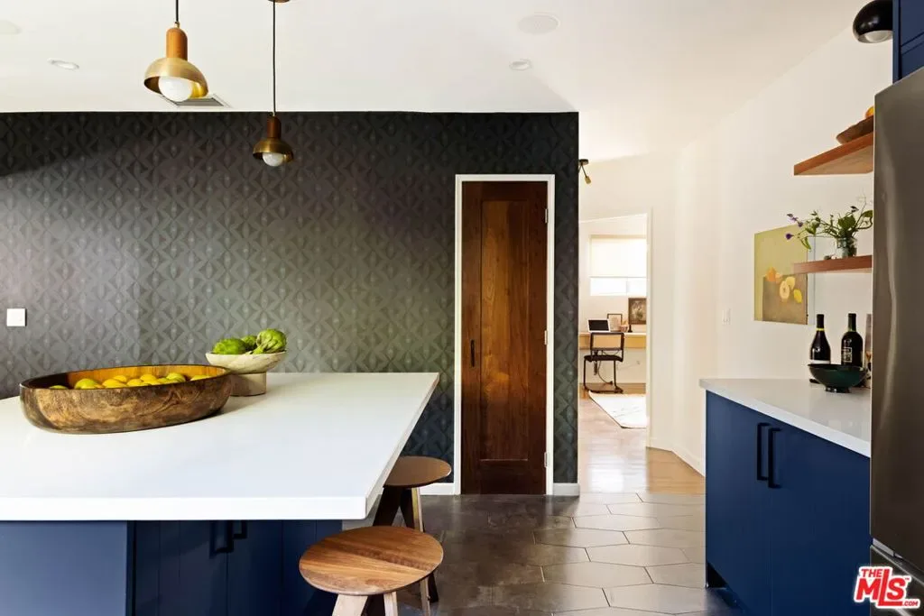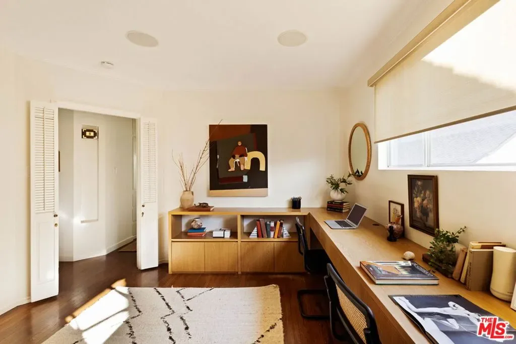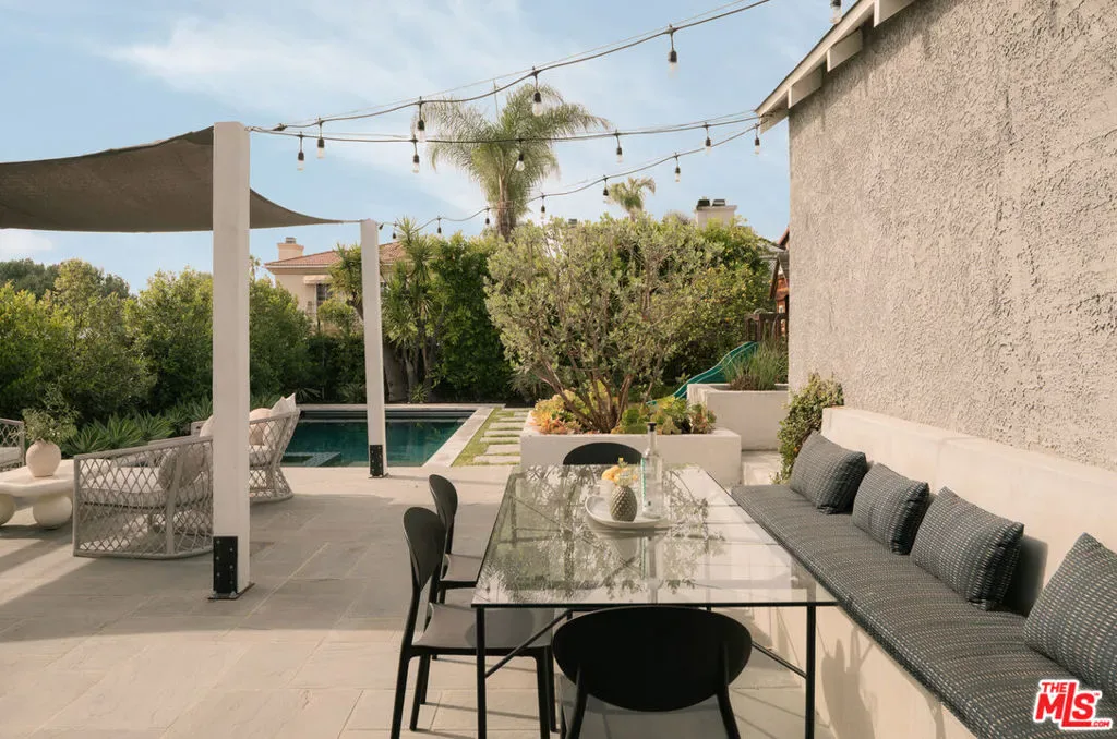 Set in prime Northwest Glendale, where the Verdugo Mountains rise dramatically as a natural backdrop, this Tudor residence offers a distinct sense of place: quiet, grounded, and deeply connected to the landscape around it. Behind its classic facade, framed by original diamond-pane leaded glass windows, the home captures light in a way that feels both timeless and quietly elegant. Inside, nearly 2,000 square feet unfold across a single level, where original hardwood floors and high ceilings establish warmth and architectural integrity, while thoughtful updates bring ease to everyday living. A porte-cochre, handcrafted sconces and custom built in shelving and desks further underscore the home’s enduring character. The oversized living room centers around a wood-burning fireplace with a custom walnut mantel with a Mission West tiled hearth, a warm focal point that carries into the formal dining room. The layout is both open and defined, with expansive rooms, clear sightlines but with moments of separation allowing for space to gather or have space. The kitchen, designed by 1000X Better, is generous in scale and thoughtfully executed. Caesarstone surfaces, a large pantry, Quercus & Co wallpaper, large island, lots of light & ample storage create a space that is elevated, functional, and inviting. Bathrooms and bedrooms, updated by designer Stacey Copeland, introduce a refined sense of play through pattern and texture including Hygge & West wallpaper, original built-ins & high-end design while maintaining the home’s timeless character. Primary suite is notably spacious, with a large walk-in closet, en suite bath with oversized shower & sliding glass doors that open to a natural stone patio, pool, spa and landscaped yard. Outdoors, the home truly expands: covered patio, built-in dining area under cafe lights, kids play structure, Schoolhouse sconces, large grassy area, decomposed granite areas create space for gathering, play, and relaxation. A large Liquidambar tree shades the home in front, while a highly productive lemon tree anchors the rear garden; all enhanced by drought-tolerant, native landscaping. Detached 1 bed, 1 bath permitted ADU with full kitchen offers exceptional flexibility for guests, multi-generational living, work from home, or income. Just around the corner, Brand Park offers multiple hiking trails, open green space, a Japanese tea house, an Arts & Culture library, Art Gallery & baseball diamond. Kenneth Village is moments away for coffee, fresh bread & pastries, Preschool & daily essentials. Glendale’s highly rated schools with diverse magnet programs, excellent city services, abundance of trees, proximity to nature and rating as one of the safest cities in California add value to your life, health and the resale value. This special home has that rare alignment of setting, design, location, function, style and amenities, where everything naturally becomes easier, calmer, more beautiful which we all yearn for.