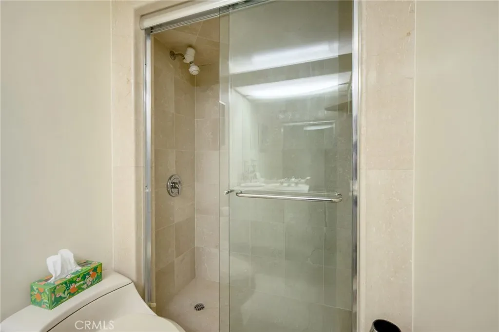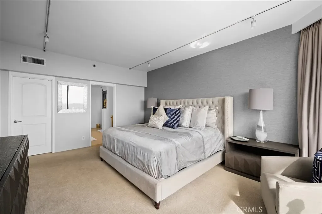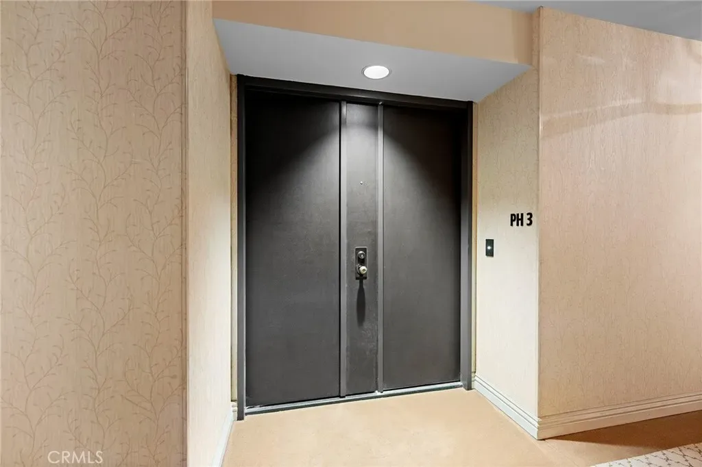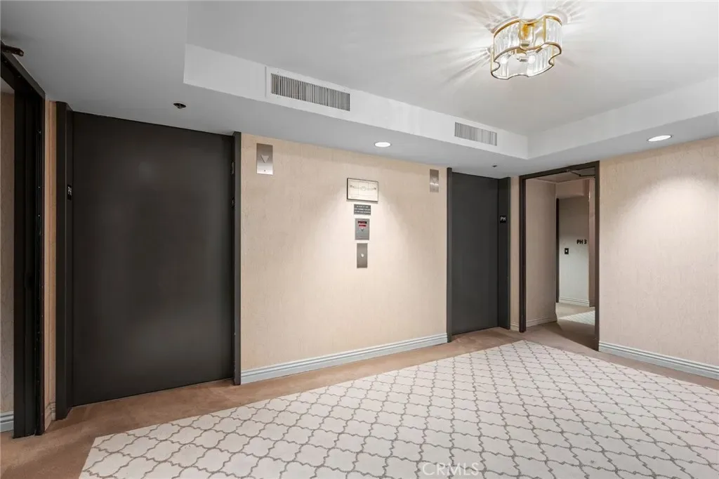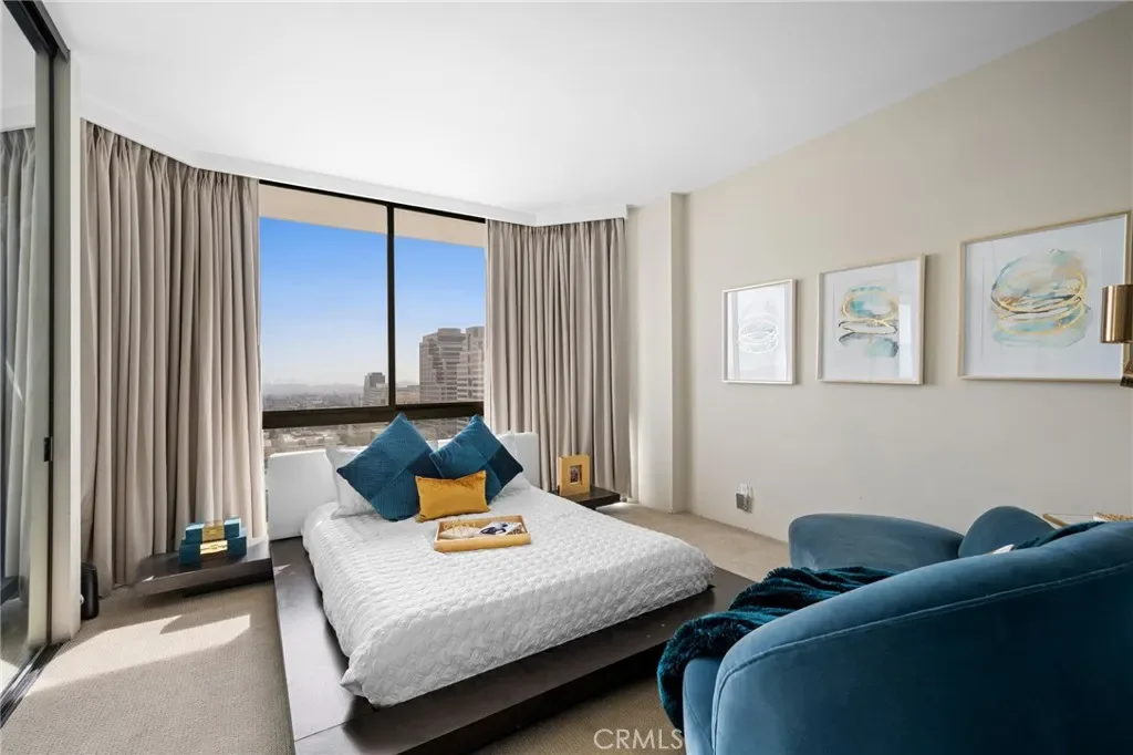 The penthouse features two large bedrooms and two elegantly remodeled bathrooms, each thoughtfully designed to maximize comfort and privacy. Large windows throughout invite abundant natural light, enhancing the airy atmosphere of this top-floor retreat.