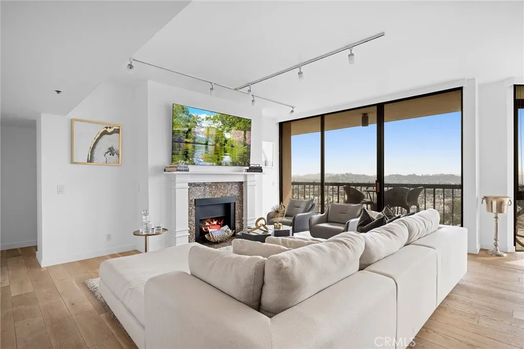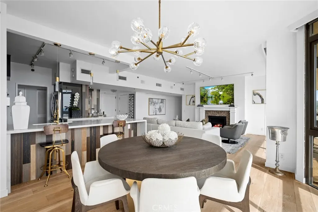 The expansive living room features a cozy fireplace, perfect for relaxing evenings, and flows seamlessly into the upgraded kitchen—complete with modern finishes, sleek cabinetry, and ample counter space for cooking and entertaining.