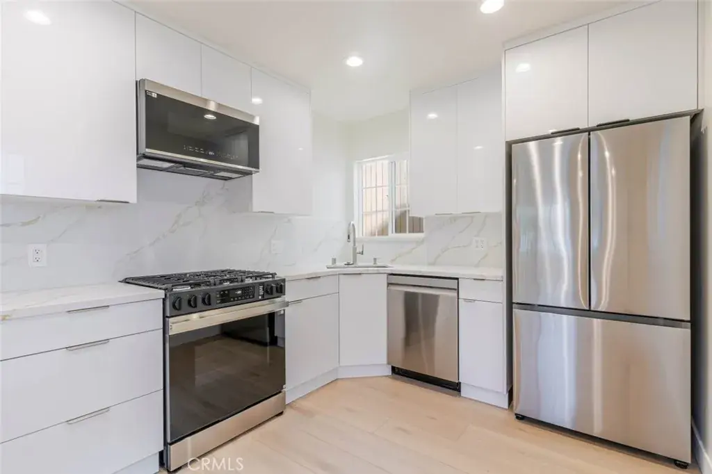 This beautifully remodeled 1-bedroom, 1-bath unit is located within a well-maintained triplex and offers modern upgrades with a functional, light-filled layout. The residence features wide-plank wood flooring, recessed lighting, and fresh neutral finishes throughout.