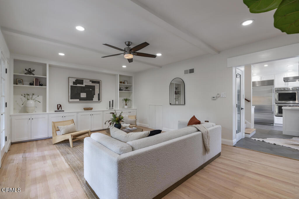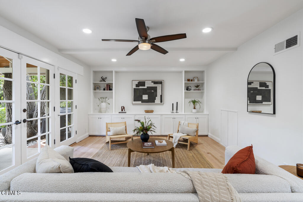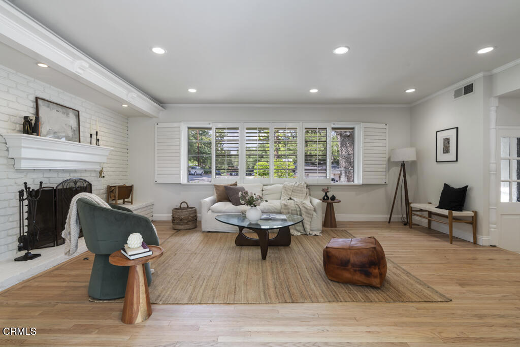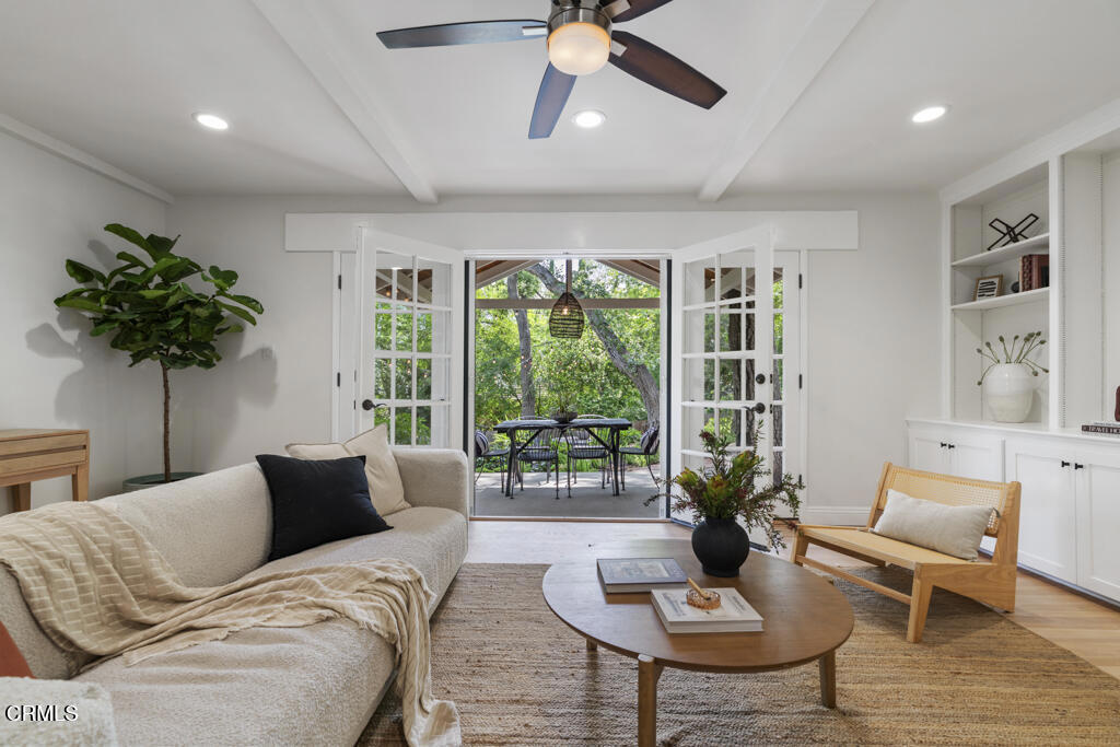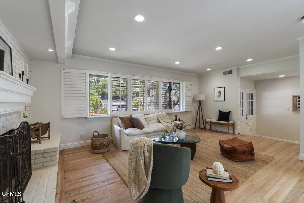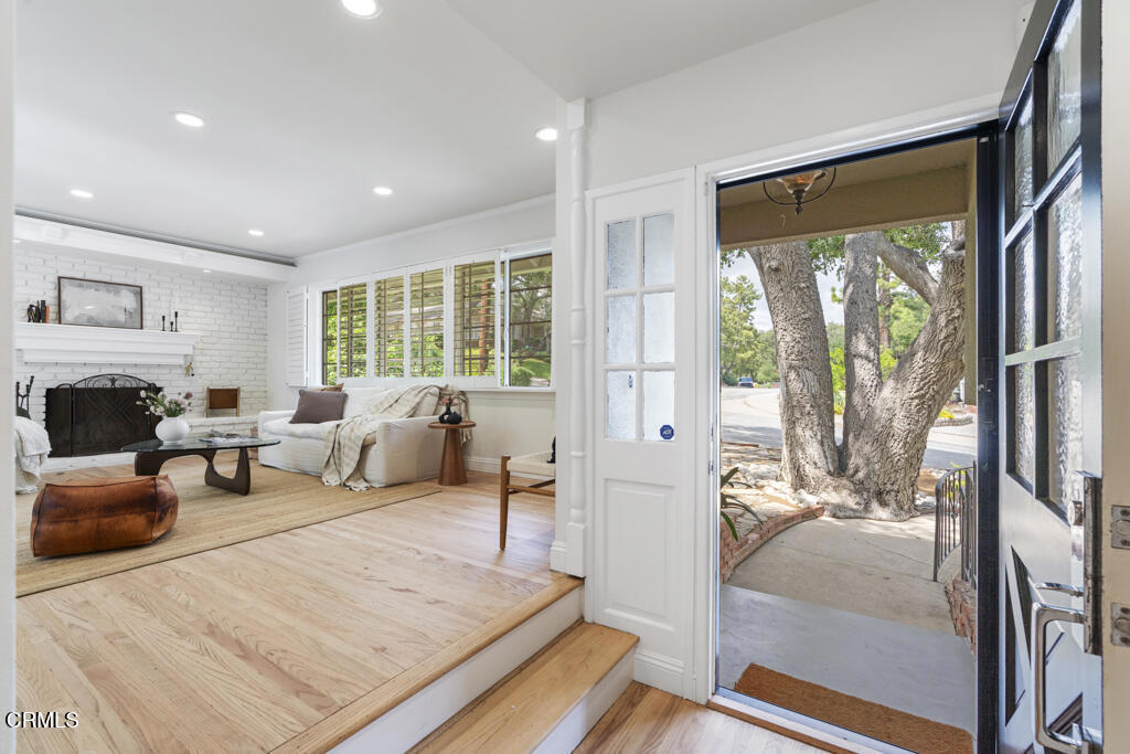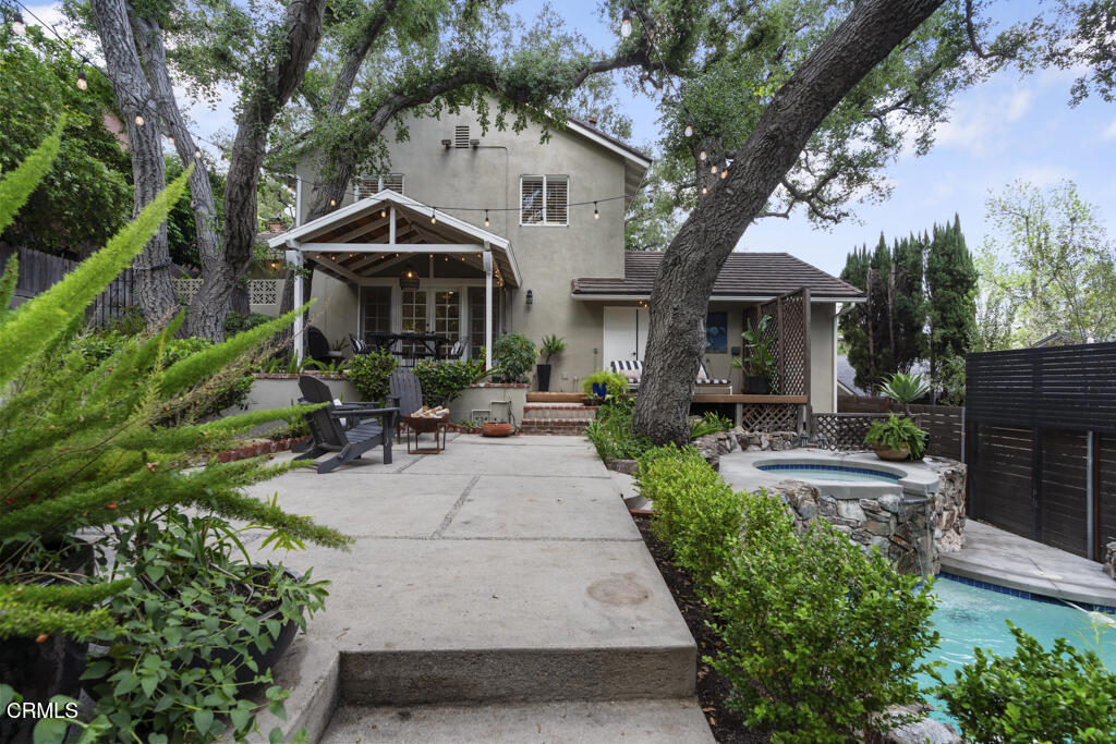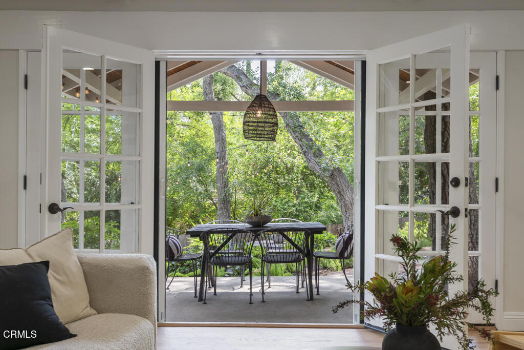 Tucked away in the private Glenwood Oaks enclave of Crescenta Highlands, this beautifully updated home offers a rare blend of refined living and natural serenity. From the moment you arrive, the property evokes a sense of peaceful retreat–feeling worlds away from the city while remaining conveniently close to everything you need. Inside, the home features two spacious, light-filled living rooms with natural hardwood floors. One showcases a cozy fireplace, while the other is enhanced by custom built-in cabinetry. Both spaces open through elegant French doors to private outdoor patios, creating a seamless connection between indoor comfort and outdoor living. The chef’s kitchen is thoughtfully designed for both everyday use and entertaining, featuring a professional-grade gas cooktop, double ovens with rotisserie, a Sub-Zero refrigerator, stone countertops, and a peninsula with seating. Adjacent to the kitchen, the dining area offers custom built-in seating–perfect for gathering with family and friends.Three generously sized bedrooms provide comfort and functionality, each complete with custom built-in closets. The two bathrooms are finished with exceptional attention to detail, including custom white oak cabinetry, marble and limestone countertops, Zellige and Cle tile, and designer plumbing fixtures. An effortless indoor-outdoor flow leads to the backyard, where lush landscaping surrounds multiple areas for lounging, dining, and entertaining. The grotto-style pool and spa–with a cascading waterfall–create a tranquil, resort-like setting ideal for relaxing at the end of the day. Just moments away, a nearby trailhead with a flowing stream offers an easy escape into nature. With close proximity to CV Park, a dog park, local eateries, boutiques, Montrose Shopping Park, and award-winning Blue Ribbon schools, this exceptional property offers both peaceful seclusion and vibrant community living that will be coveted by many.