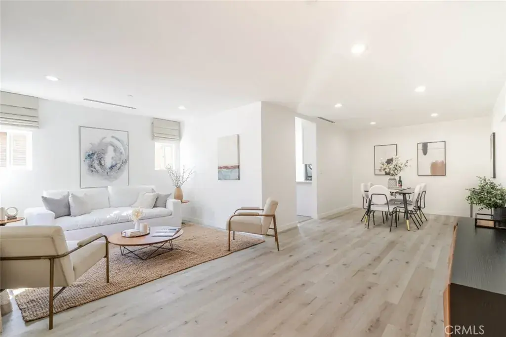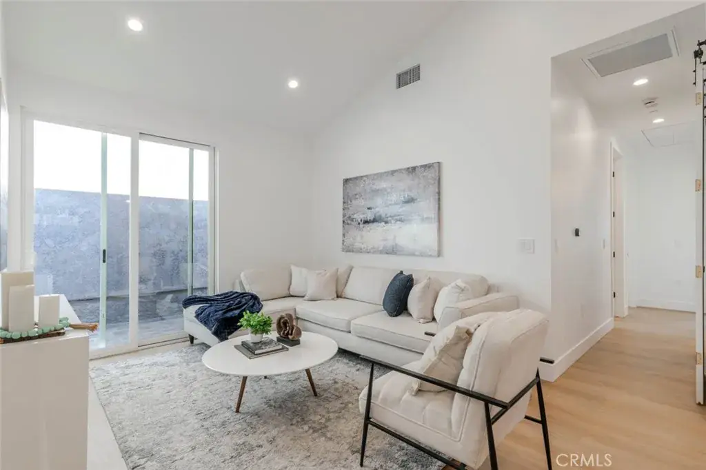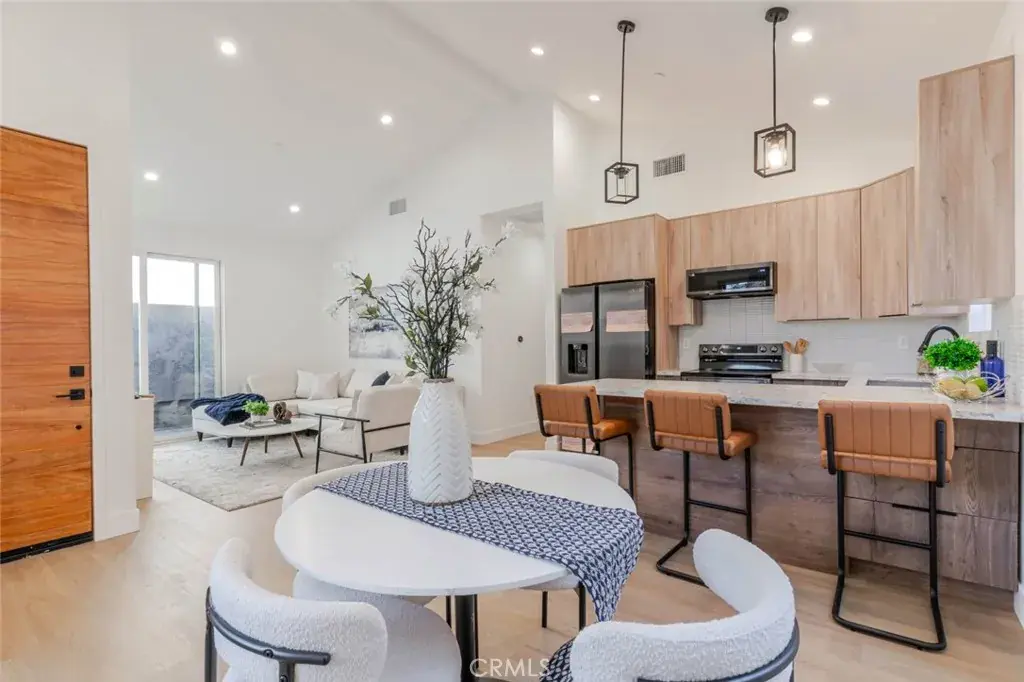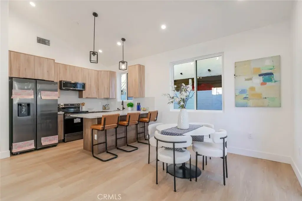 All units are fully equipped with stainless steel appliances, including refrigerator, oven, microwave, washer, and dryer, along with dedicated laundry spaces for each home. Interior finishes include recessed lighting, light wood-tone flooring, fresh white paint, and ample cabinet space, creating bright, contemporary living environments throughout.
