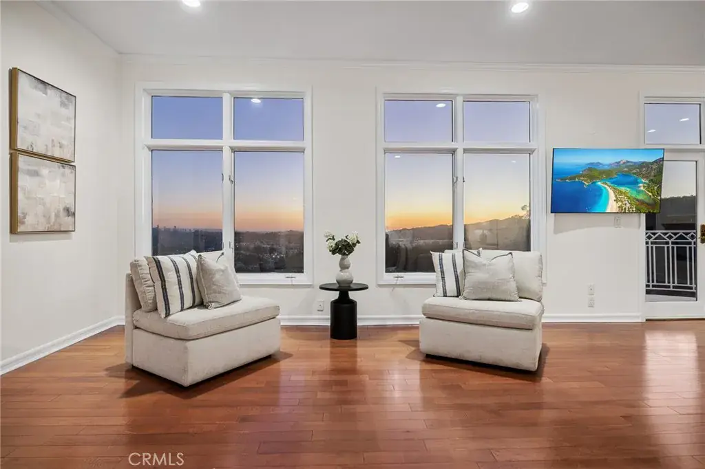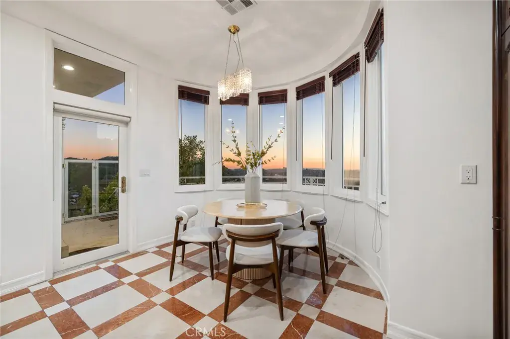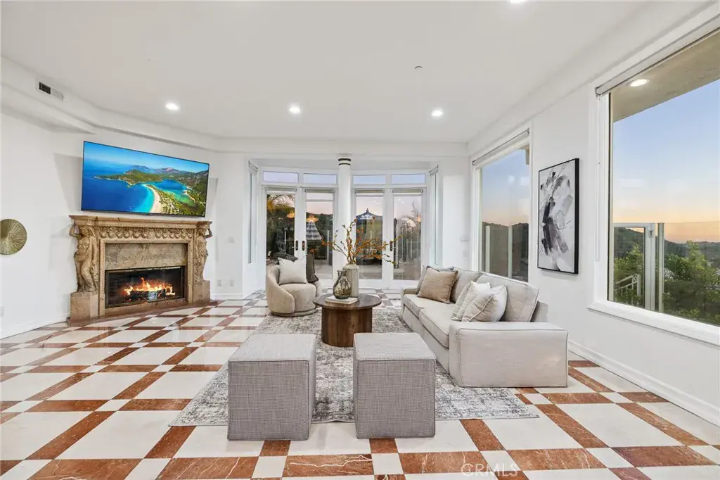 Angeles and Glendale, creating a living gallery where city lights become your evening entertainment and mountain backdrops define your daily experience. The main level flows seamlessly for grand-scale entertaining, featuring 21-foot ceilings in the living room, dining room, and family room. Floor-to-ceiling windows throughout maximize the spectacular views while flooding interiors with natural light. Rich hardwood floors and imported marble stone create an elegant foundation throughout, reflecting the impeccable attention to detail that defines this property.The spectacular master suite offers a true retreat with panoramic views from every window, creating a sense of floating above the city. The suite features a cozy fireplace for intimate evenings, a luxurious jacuzzi tub for ultimate relaxation, and an expansive walk-in closet that rivals the finest boutiques. Every detail has been carefully considered to create a private sanctuary within this exceptional home.The newly remodeled pool and spa create a private resort experience in your own backyard, perfectly positioned to capture both mountain and city views. The outdoor spaces have been designed as natural extensions of the interior living areas, providing multiple venues for alfresco dining, poolside relaxation, and outdoor entertaining against the dramatic backdrop of the Verdugo Mountains.