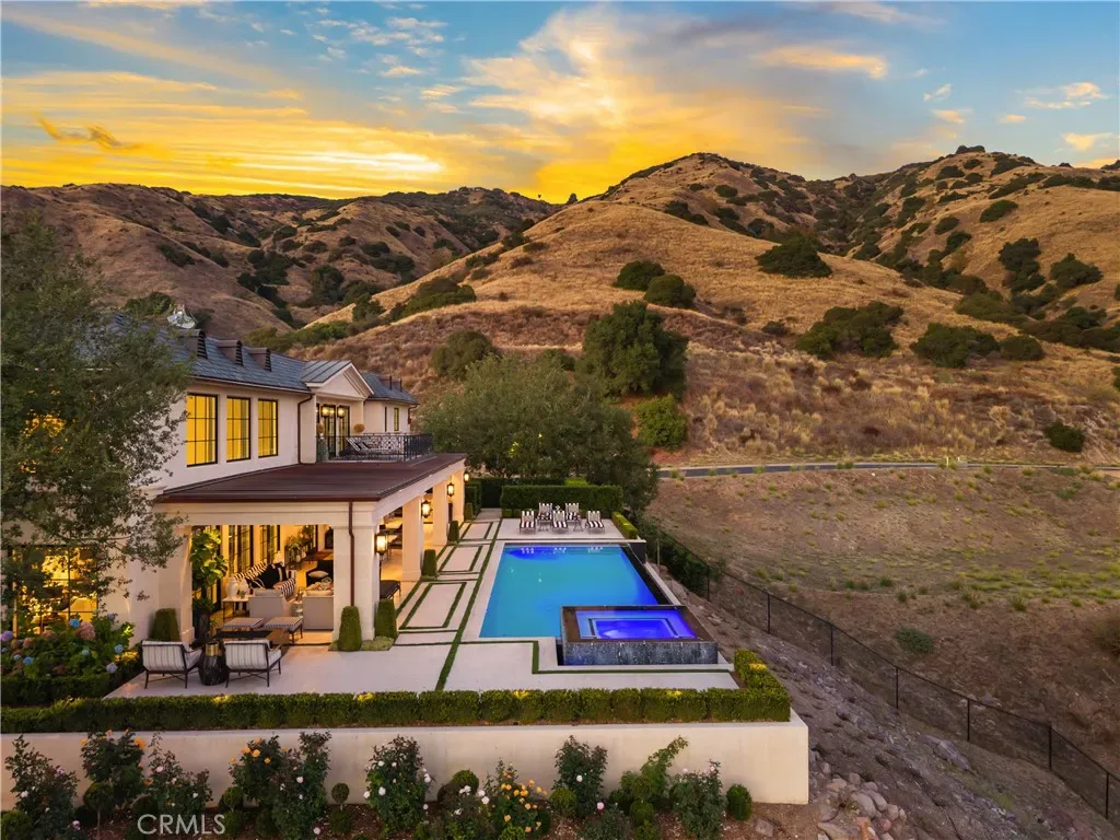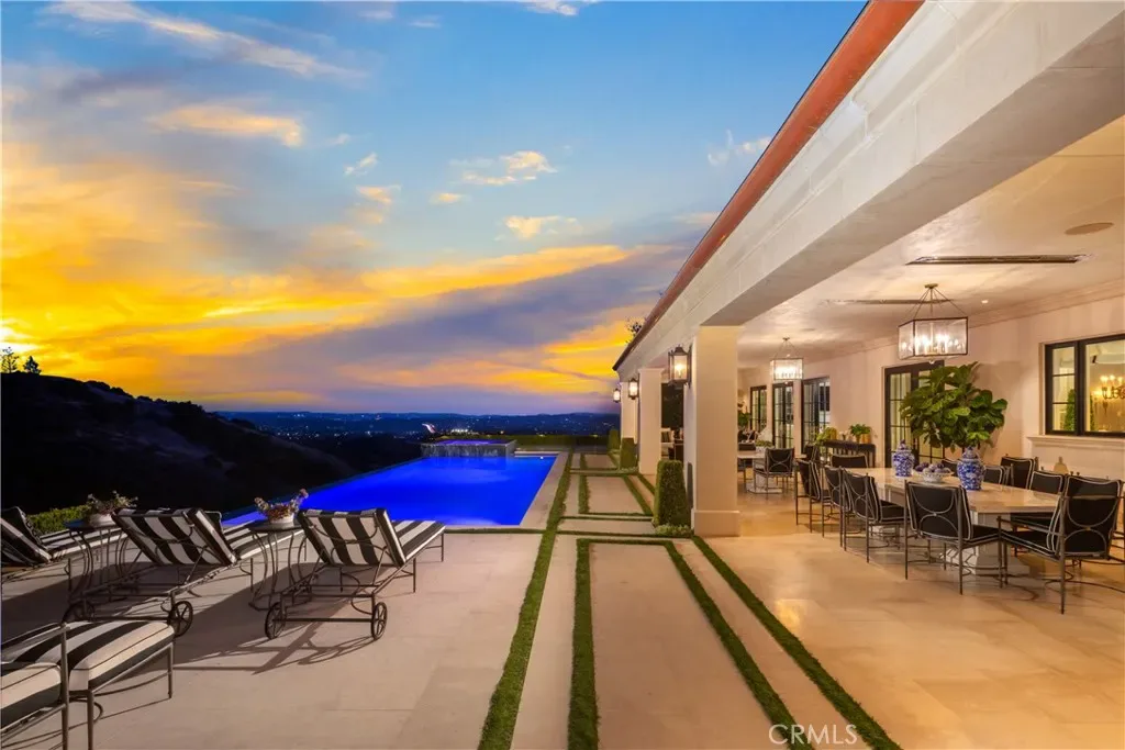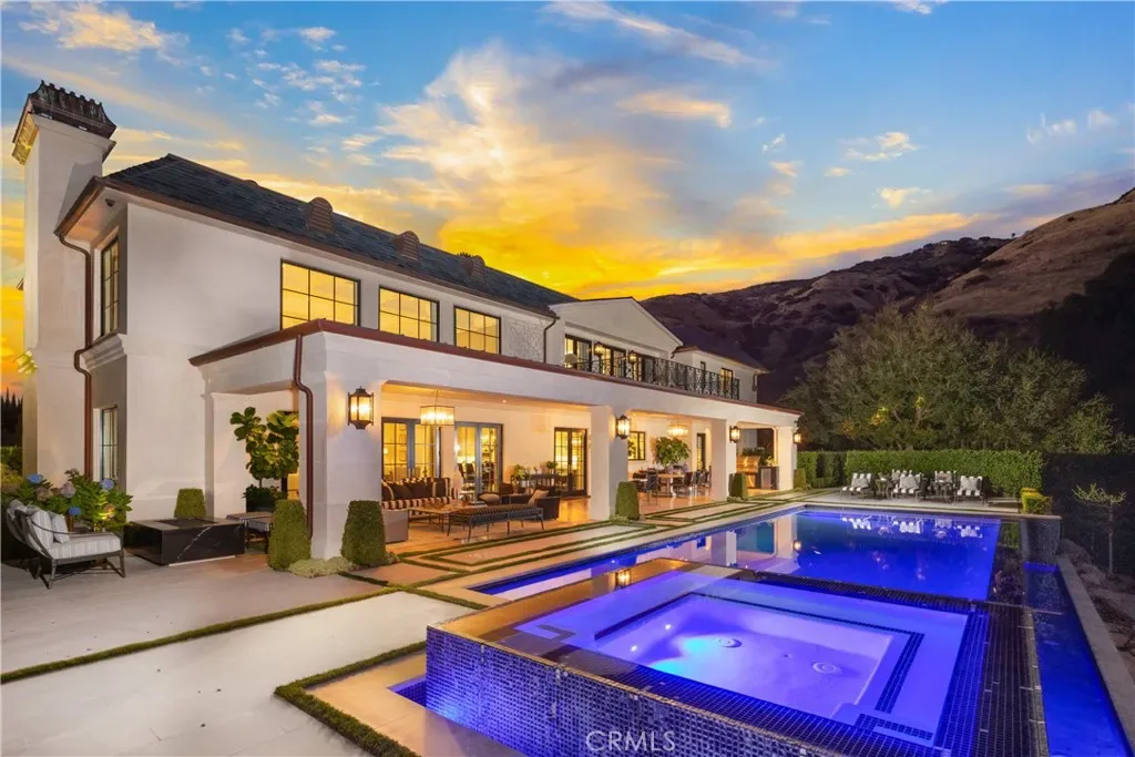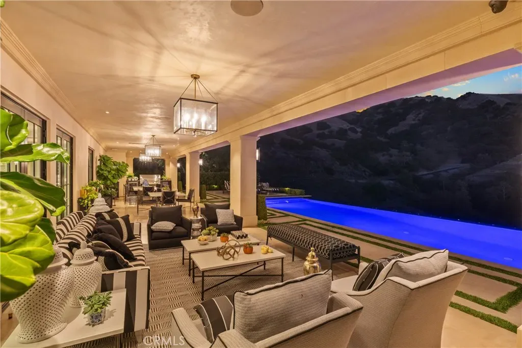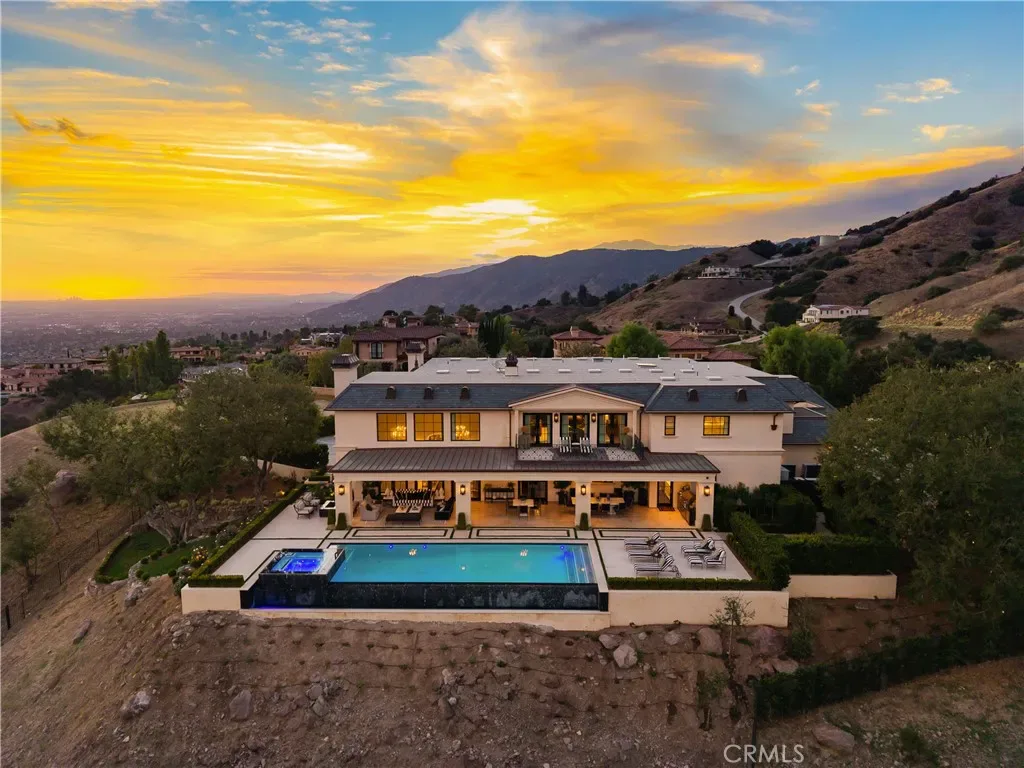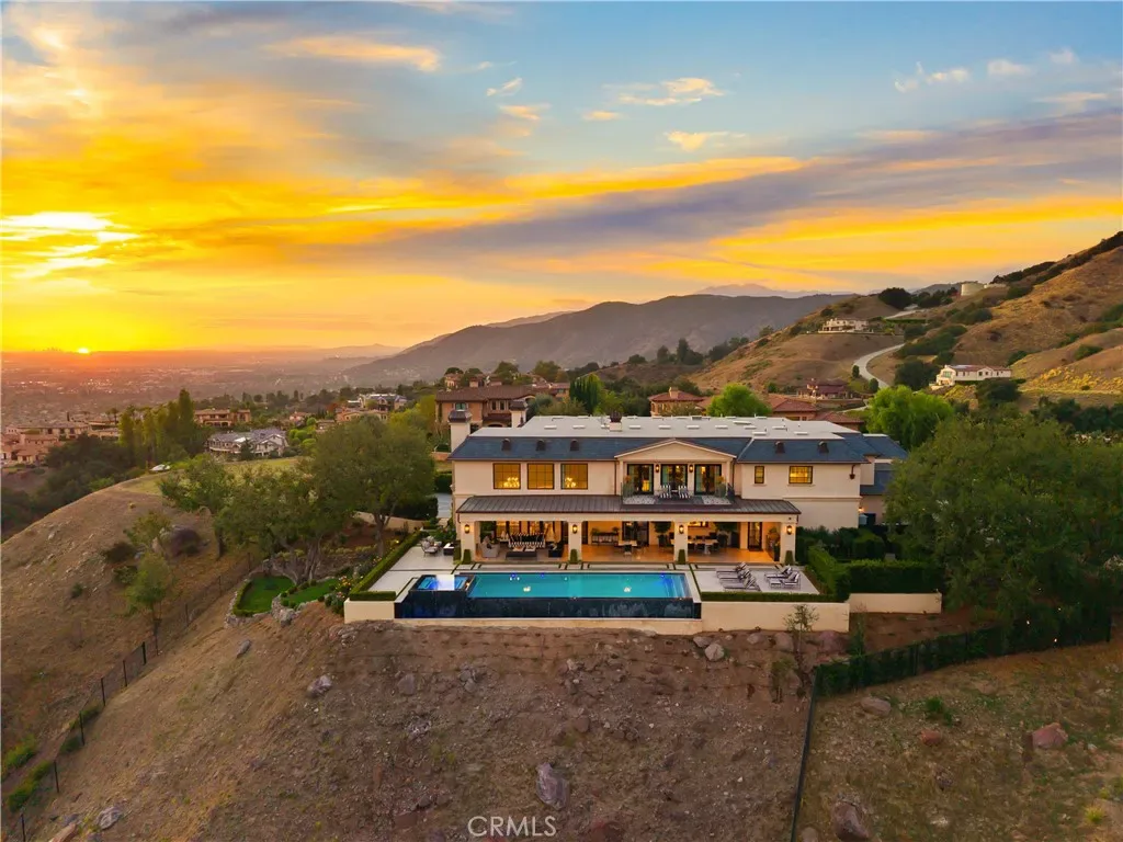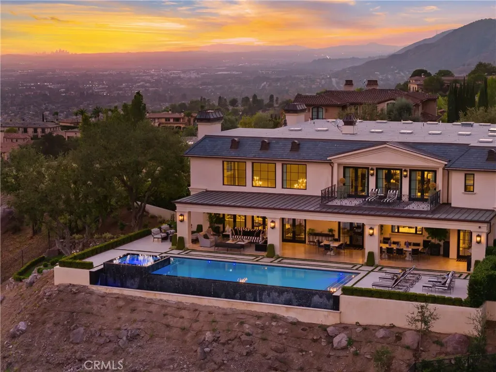 Set behind the gates of Glendora’s only 24-hour guard-gated community, this extraordinary custom estate embodies architectural mastery, timeless elegance, and modern innovation. Poised on an elevated lot with panoramic city-light views, the residence has been meticulously crafted with the finest materials, advanced technologies, and impeccable attention to detail. A grand motor court framed by solid iron gates and in-ground motors welcomes you to the home, where gas lanterns, copper flashings, dormers, and chimney caps highlight its refined exterior. The beautifully landscaped grounds showcase the owner’s pride of care, thoughtfully curated with limestone walkways, lush greenery, and elegant lighting that enhances the estate’s natural beauty both day and night. Inside, a striking floating staircase, walnut flooring, and intricate wood paneling anchor interiors adorned with rock crystal chandeliers, Calcutta marble finishes, and custom brass-accented iron railings. State-of-the-art systems include Lutron lighting, Control4 automation, hidden motorized shades, custom AC vents, and full-home insulation for year-round comfort. The gourmet kitchen is a culinary showpiece with dual marble islands, Wolf and Sub-Zero appliances, a dedicated wok kitchen, and extensive custom cabinetry with pull drawers throughout. Additional features include a private theater with acoustic sound boards, a custom sauna, and two finished attics offering versatile functional space. The primary suite serves as a tranquil sanctuary, featuring a fireplace sitting area, spa-like en suite bath, and a large balcony capturing sweeping city-light views. Its designer walk-in closet boasts custom cabinetry, built-in drawers, and a sparkling chandelier centerpiece. Outdoors, the property evokes the essence of a private resort with an infinity pool, rim-flow spa, deck jets, custom fire pit, and ceiling-mounted heaters for year-round enjoyment. Entertain under the covered pavilion with built-in BBQ, hidden hydronic TV, and expansive limestone patios framed by solid iron railings and ambient lighting. An attached four-car garage and an extended gated driveway provide ample parking for automobile enthusiasts. Located within the award-winning Glendora Unified School District, and close to scenic trails, parks, and fine dining, this home redefines luxury living in a secure, 24-hour guard-gated enclave where architectural integrity, smart-home innovation, and timeless beauty converge in perfect harmony