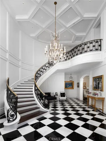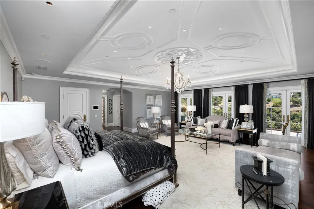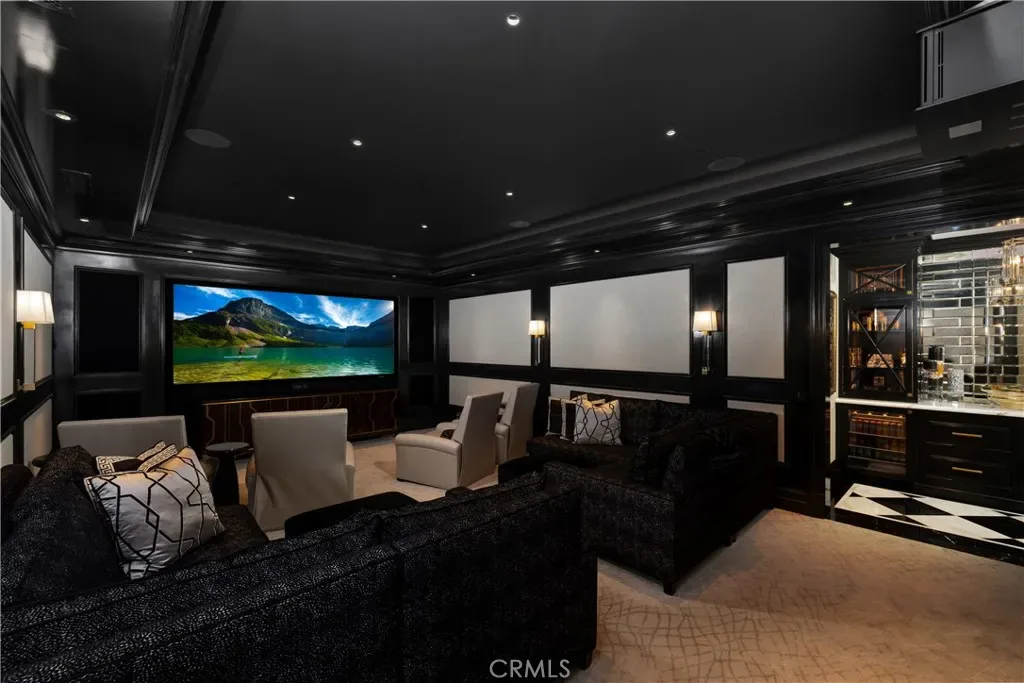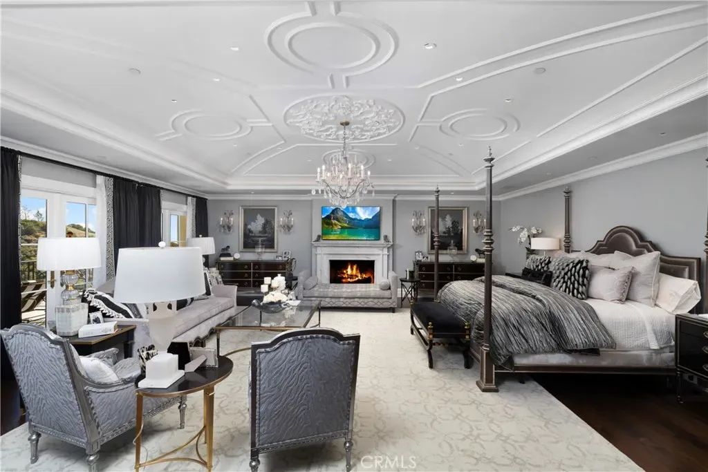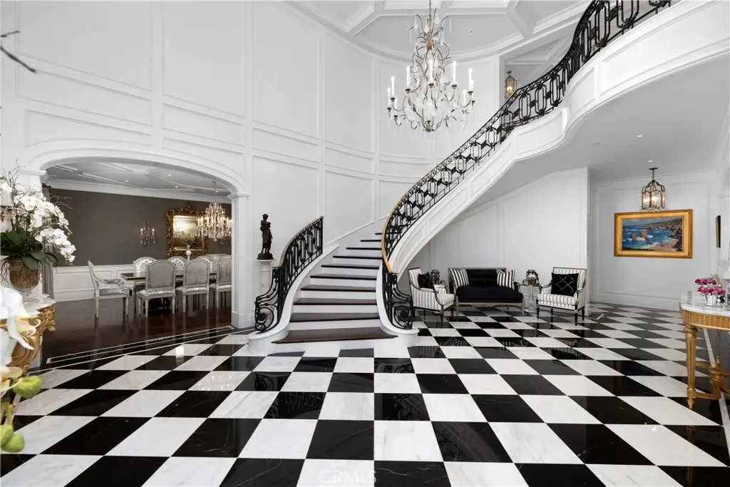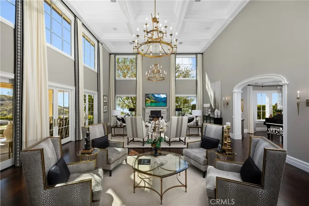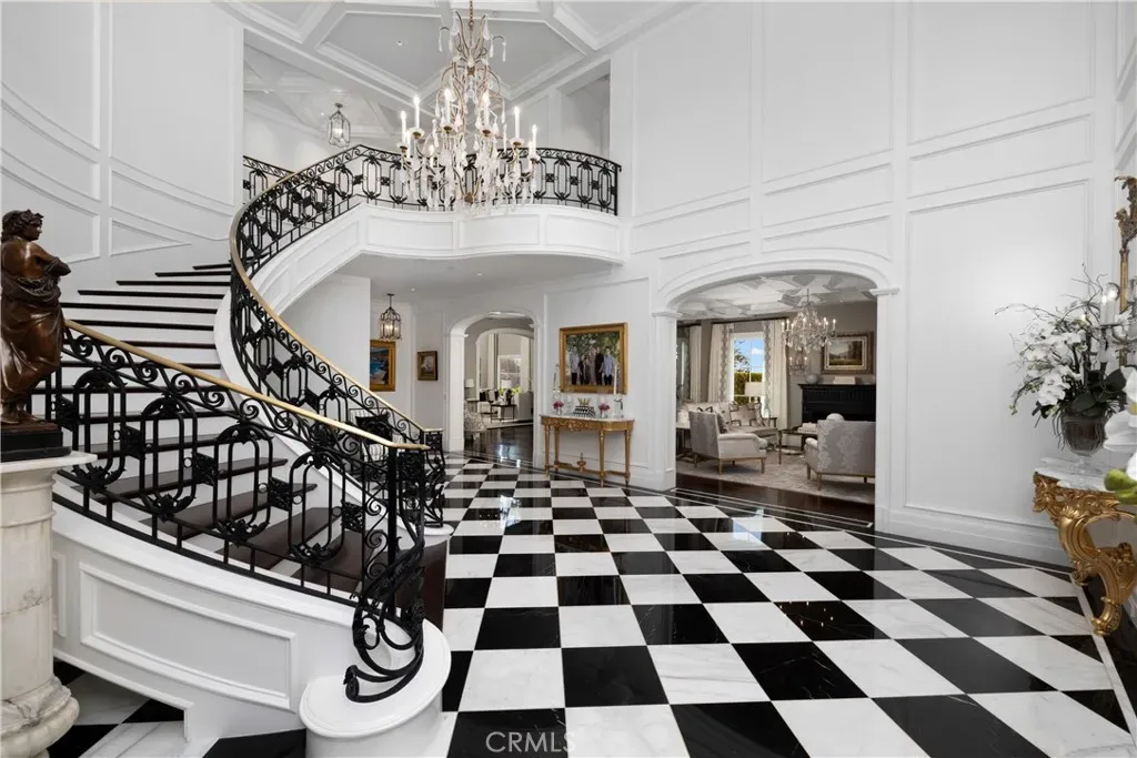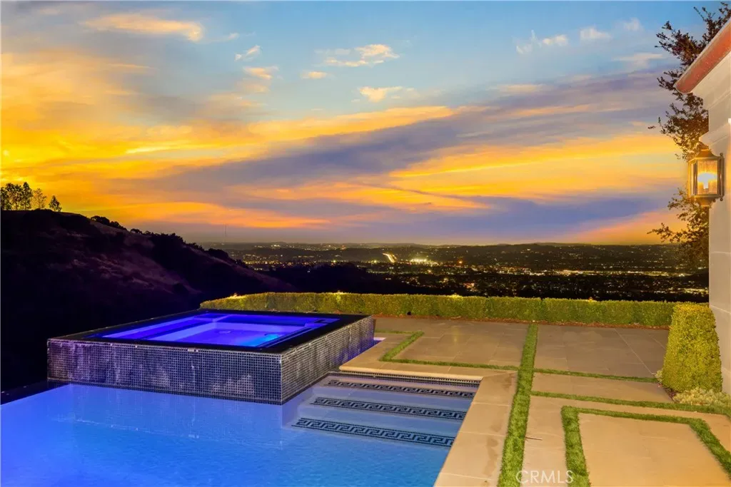 Set behind the gates of Glendora’s only 24-hour guard-gated community, this extraordinary custom estate embodies architectural mastery, timeless elegance, and modern innovation. Poised on an elevated lot with panoramic city-light views, the residence has been meticulously crafted with the finest materials, advanced technologies, and impeccable attention to detail. A grand motor court framed by solid iron gates and in-ground motors welcomes you to the home, where gas lanterns, copper flashings, dormers, and chimney caps highlight its refined exterior. The beautifully landscaped grounds showcase the owner’s pride of care, thoughtfully curated with limestone walkways, lush greenery, and elegant lighting that enhances the estate’s natural beauty both day and night. Inside, a striking floating staircase, walnut flooring, and intricate wood paneling anchor interiors adorned with rock crystal chandeliers, Calcutta marble finishes, and custom brass-accented iron railings. State-of-the-art systems include Lutron lighting, Control4 automation, hidden motorized shades, custom AC vents, and full-home insulation for year-round comfort. The gourmet kitchen is a culinary showpiece with dual marble islands, Wolf and Sub-Zero appliances, a dedicated wok kitchen, and extensive custom cabinetry with pull drawers throughout. Additional features include a private theater with acoustic sound boards, a custom sauna, and two finished attics offering versatile functional space. The primary suite serves as a tranquil sanctuary, featuring a fireplace sitting area, spa-like en suite bath, and a large balcony capturing sweeping city-light views. Its designer walk-in closet boasts custom cabinetry, built-in drawers, and a sparkling chandelier centerpiece. Outdoors, the property evokes the essence of a private resort with an infinity pool, rim-flow spa, deck jets, custom fire pit, and ceiling-mounted heaters for year-round enjoyment. Entertain under the covered pavilion with built-in BBQ, hidden hydronic TV, and expansive limestone patios framed by solid iron railings and ambient lighting. An attached four-car garage and an extended gated driveway provide ample parking for automobile enthusiasts. Located within the award-winning Glendora Unified School District, and close to scenic trails, parks, and fine dining, this home redefines luxury living in a secure, 24-hour guard-gated enclave where architectural integrity, smart-home innovation, and timeless beauty converge in perfect harmony