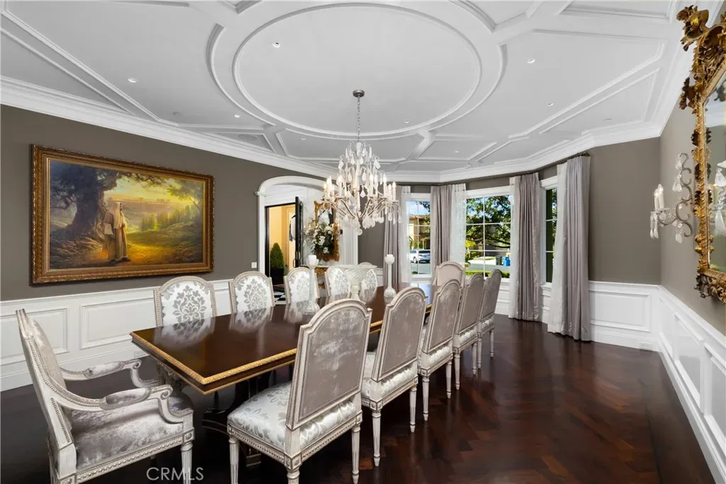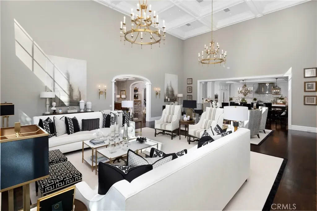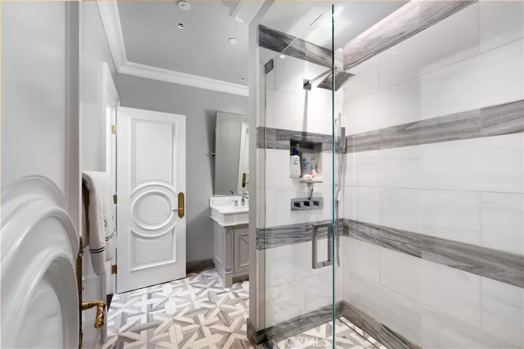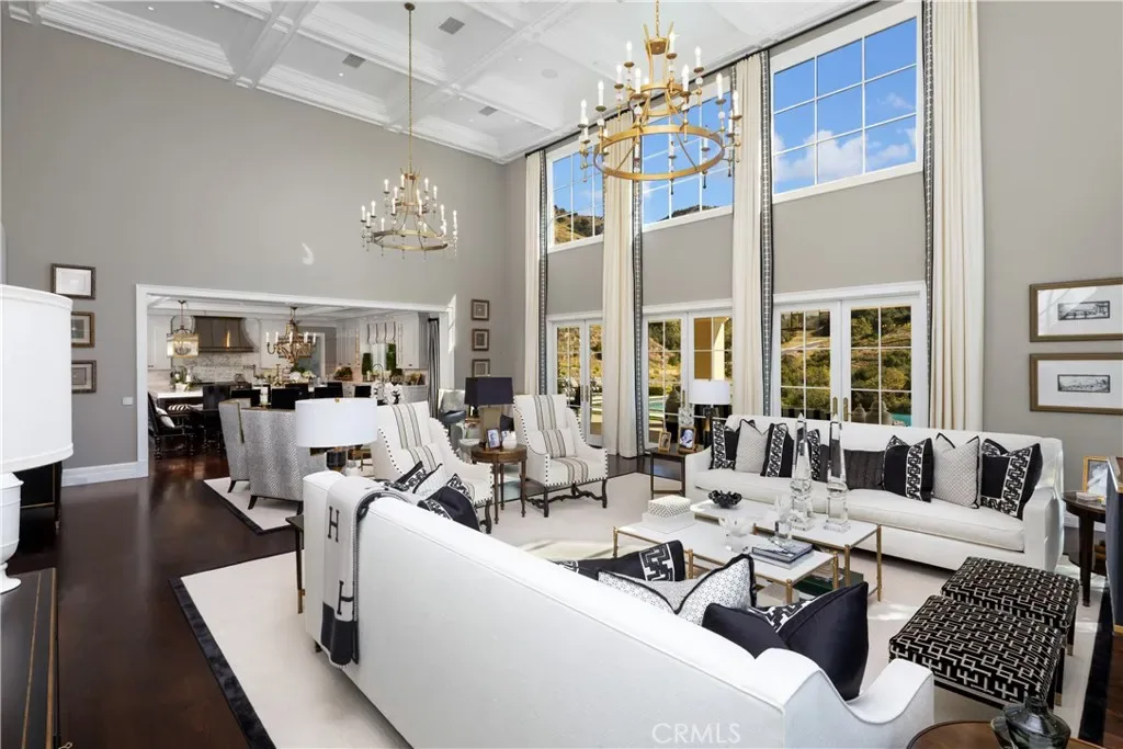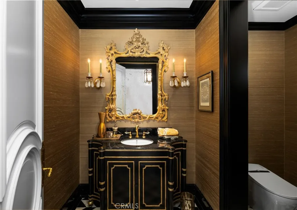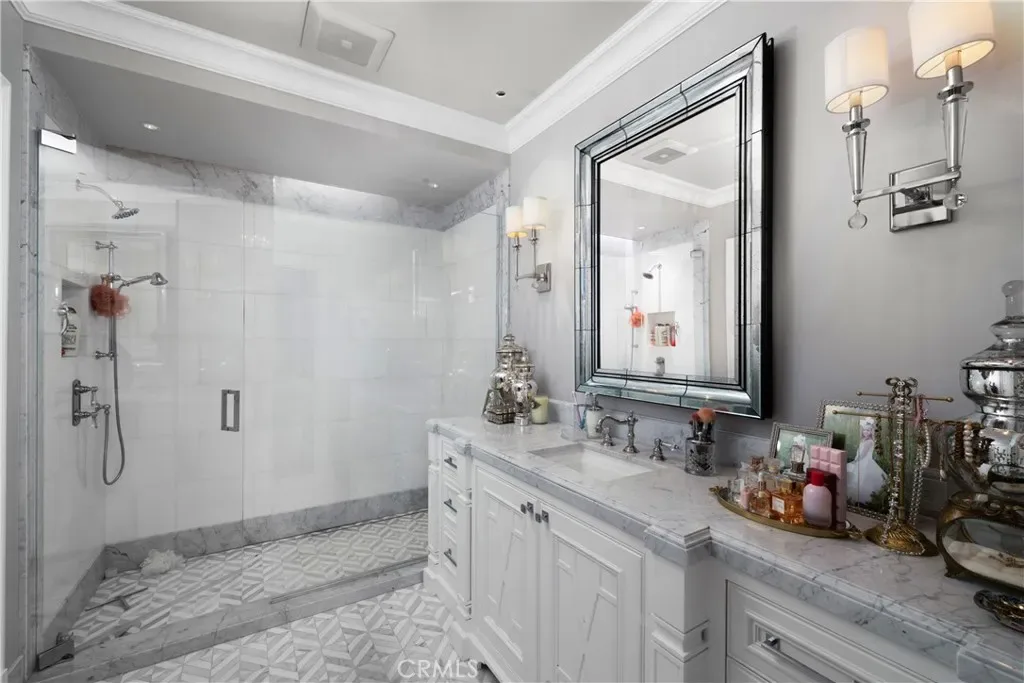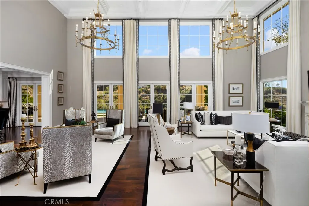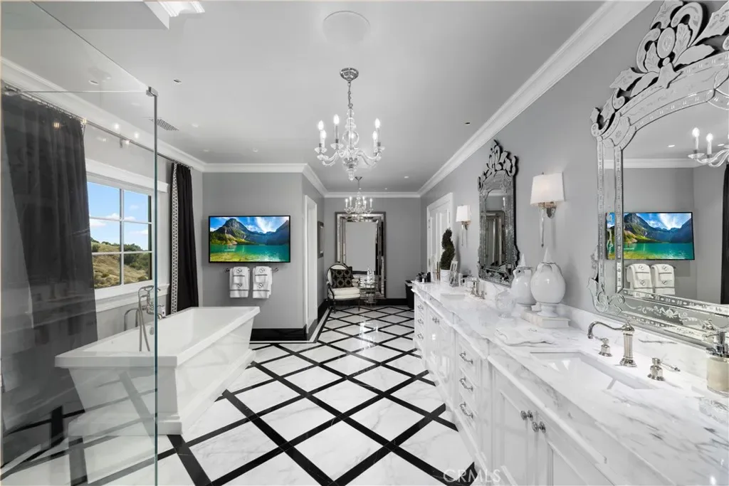 Set behind the gates of Glendora’s only 24-hour guard-gated community, this extraordinary custom estate embodies architectural mastery, timeless elegance, and modern innovation. Poised on an elevated lot with panoramic city-light views, the residence has been meticulously crafted with the finest materials, advanced technologies, and impeccable attention to detail. A grand motor court framed by solid iron gates and in-ground motors welcomes you to the home, where gas lanterns, copper flashings, dormers, and chimney caps highlight its refined exterior. The beautifully landscaped grounds showcase the owner’s pride of care, thoughtfully curated with limestone walkways, lush greenery, and elegant lighting that enhances the estate’s natural beauty both day and night. Inside, a striking floating staircase, walnut flooring, and intricate wood paneling anchor interiors adorned with rock crystal chandeliers, Calcutta marble finishes, and custom brass-accented iron railings. State-of-the-art systems include Lutron lighting, Control4 automation, hidden motorized shades, custom AC vents, and full-home insulation for year-round comfort. The gourmet kitchen is a culinary showpiece with dual marble islands, Wolf and Sub-Zero appliances, a dedicated wok kitchen, and extensive custom cabinetry with pull drawers throughout. Additional features include a private theater with acoustic sound boards, a custom sauna, and two finished attics offering versatile functional space. The primary suite serves as a tranquil sanctuary, featuring a fireplace sitting area, spa-like en suite bath, and a large balcony capturing sweeping city-light views. Its designer walk-in closet boasts custom cabinetry, built-in drawers, and a sparkling chandelier centerpiece. Outdoors, the property evokes the essence of a private resort with an infinity pool, rim-flow spa, deck jets, custom fire pit, and ceiling-mounted heaters for year-round enjoyment. Entertain under the covered pavilion with built-in BBQ, hidden hydronic TV, and expansive limestone patios framed by solid iron railings and ambient lighting. An attached four-car garage and an extended gated driveway provide ample parking for automobile enthusiasts. Located within the award-winning Glendora Unified School District, and close to scenic trails, parks, and fine dining, this home redefines luxury living in a secure, 24-hour guard-gated enclave where architectural integrity, smart-home innovation, and timeless beauty converge in perfect harmony