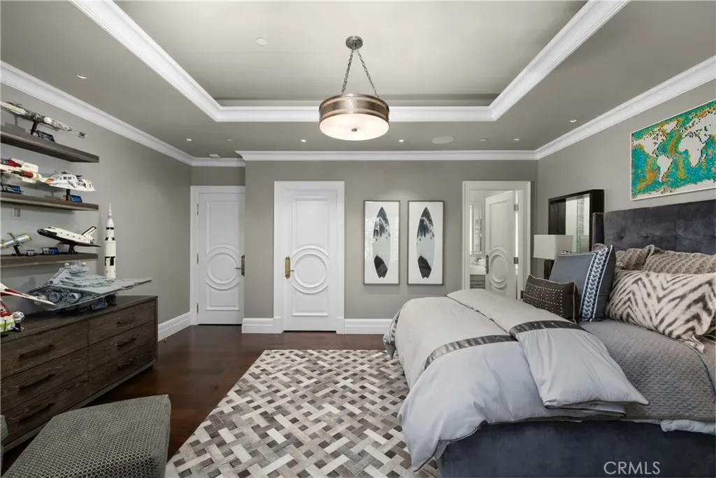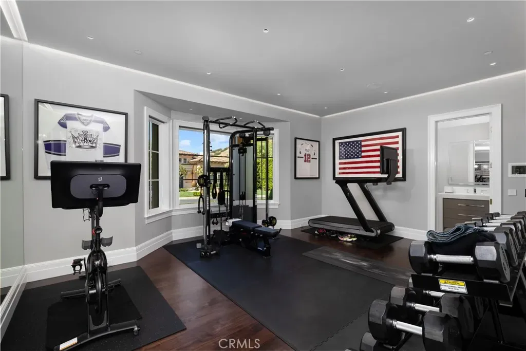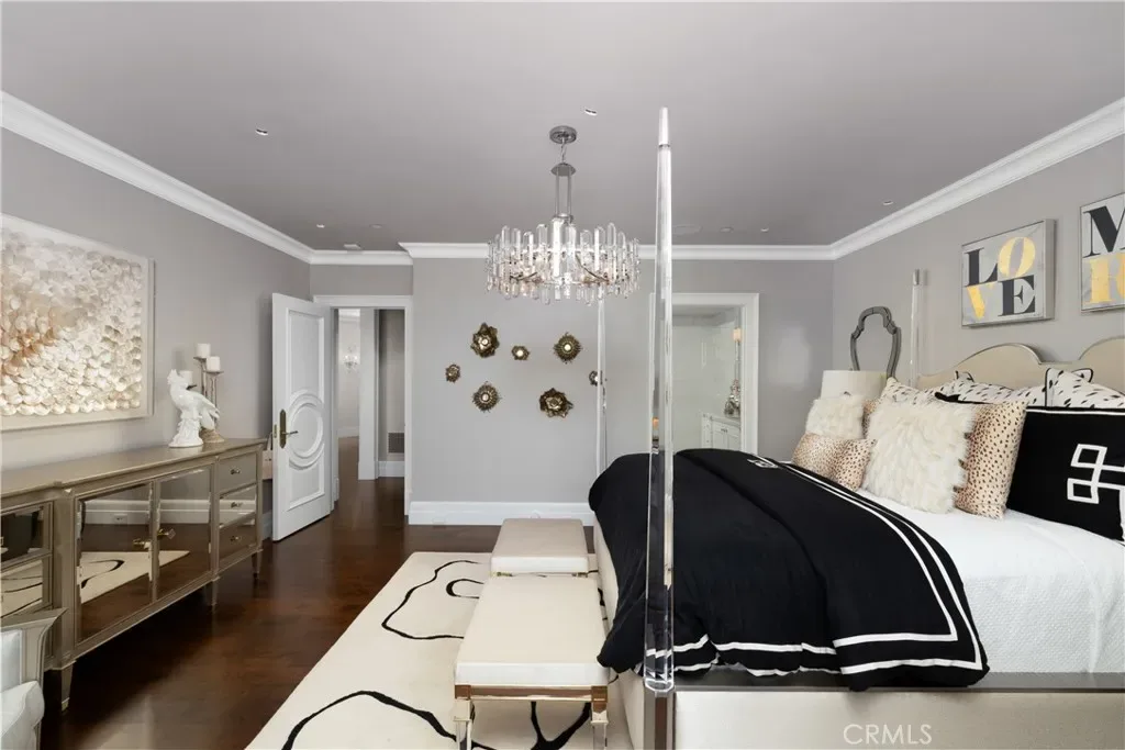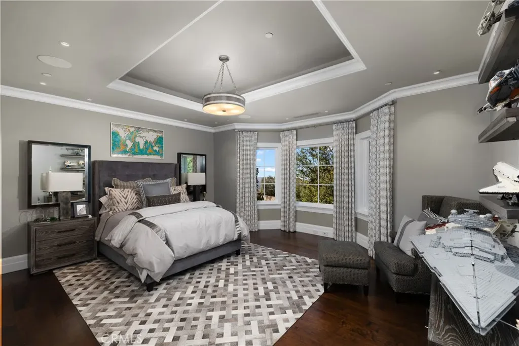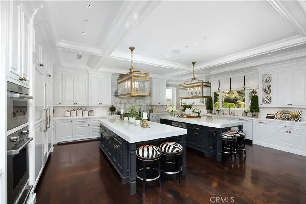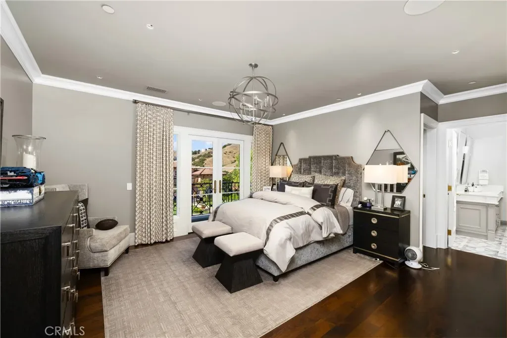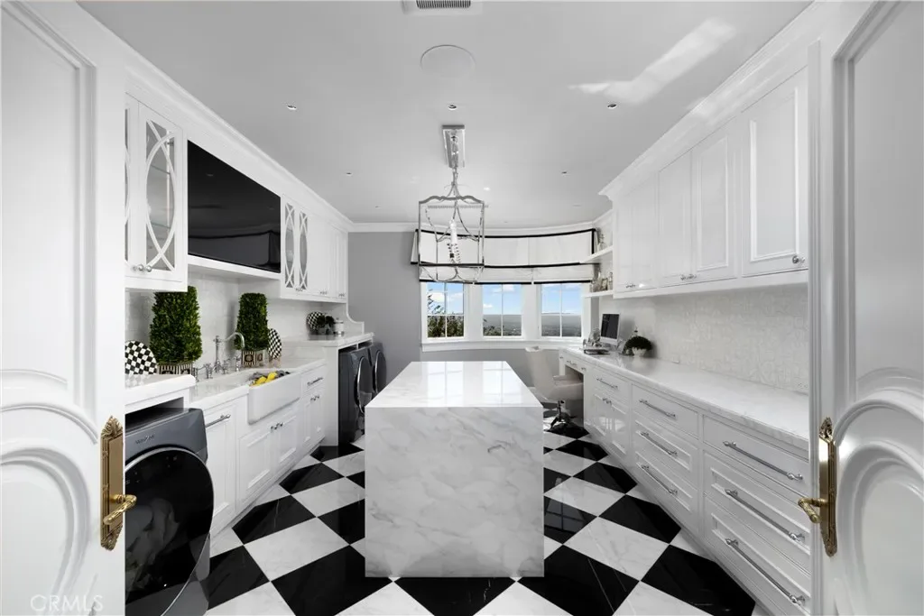 Set behind the gates of Glendora’s only 24-hour guard-gated community, this extraordinary custom estate embodies architectural mastery, timeless elegance, and modern innovation. Poised on an elevated lot with panoramic city-light views, the residence has been meticulously crafted with the finest materials, advanced technologies, and impeccable attention to detail. A grand motor court framed by solid iron gates and in-ground motors welcomes you to the home, where gas lanterns, copper flashings, dormers, and chimney caps highlight its refined exterior. The beautifully landscaped grounds showcase the owner’s pride of care, thoughtfully curated with limestone walkways, lush greenery, and elegant lighting that enhances the estate’s natural beauty both day and night. Inside, a striking floating staircase, walnut flooring, and intricate wood paneling anchor interiors adorned with rock crystal chandeliers, Calcutta marble finishes, and custom brass-accented iron railings. State-of-the-art systems include Lutron lighting, Control4 automation, hidden motorized shades, custom AC vents, and full-home insulation for year-round comfort. The gourmet kitchen is a culinary showpiece with dual marble islands, Wolf and Sub-Zero appliances, a dedicated wok kitchen, and extensive custom cabinetry with pull drawers throughout. Additional features include a private theater with acoustic sound boards, a custom sauna, and two finished attics offering versatile functional space. The primary suite serves as a tranquil sanctuary, featuring a fireplace sitting area, spa-like en suite bath, and a large balcony capturing sweeping city-light views. Its designer walk-in closet boasts custom cabinetry, built-in drawers, and a sparkling chandelier centerpiece. Outdoors, the property evokes the essence of a private resort with an infinity pool, rim-flow spa, deck jets, custom fire pit, and ceiling-mounted heaters for year-round enjoyment. Entertain under the covered pavilion with built-in BBQ, hidden hydronic TV, and expansive limestone patios framed by solid iron railings and ambient lighting. An attached four-car garage and an extended gated driveway provide ample parking for automobile enthusiasts. Located within the award-winning Glendora Unified School District, and close to scenic trails, parks, and fine dining, this home redefines luxury living in a secure, 24-hour guard-gated enclave where architectural integrity, smart-home innovation, and timeless beauty converge in perfect harmony